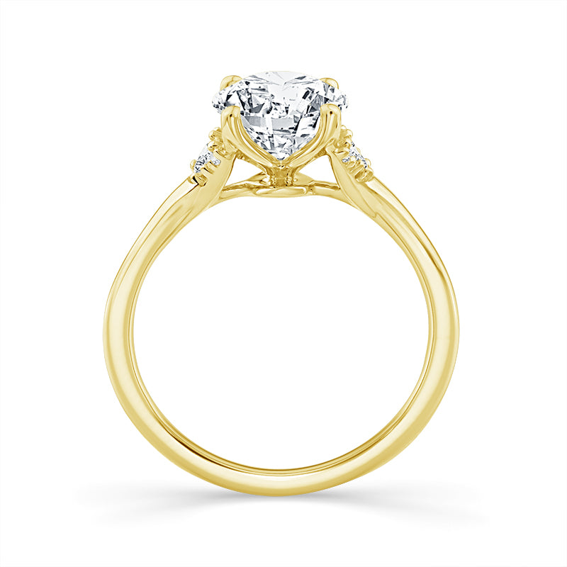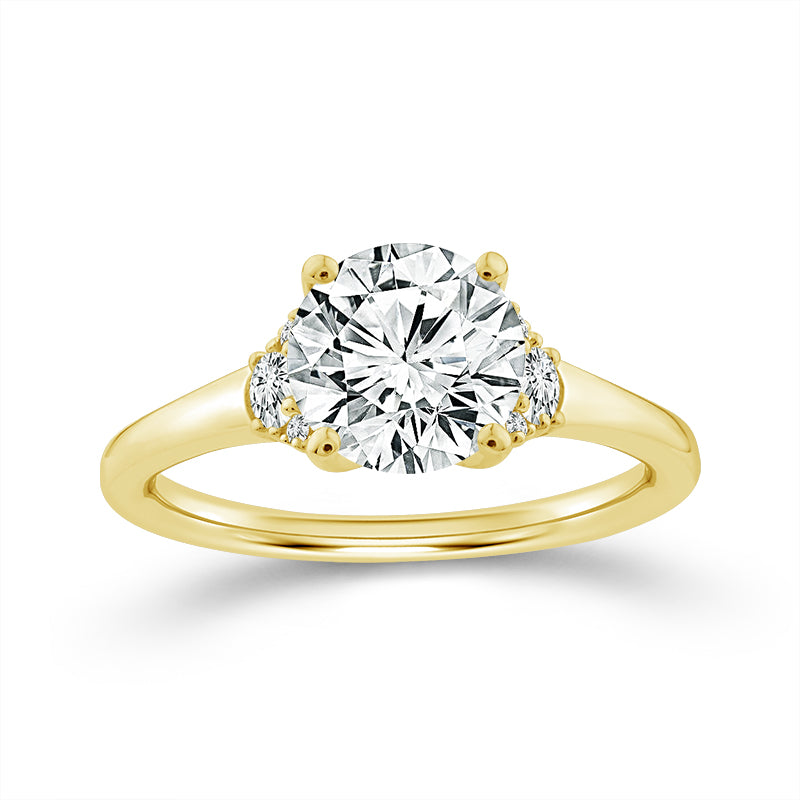 Metal: 14k Yellow Gold Total Diamond Weight: 1 5/8 Ctw or Larger Center Diamond Carat Weight Range: 1 1/2 Ct Round Lab Grown Diamond # of Side Diamonds: 6 Round Lab Grown Diamonds (0.15 Ctw) Guaranteed Diamond Color Range: E-F Color Guaranteed Diamond Clarity Range: VS1-VS2 Cut: Excellent