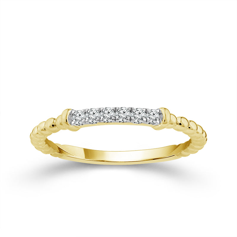 Shop this stackable diamond band in 14 karat yellow gold with free two day shipping or in-store pickup. Metal Type/Color: 14 Karat Yellow Gold Diamond Carat Total Weight: 1/10 Ctw # of Diamonds: 6 Round Diamonds Diamond Color: Near Colorless Diamond Clarity: SI