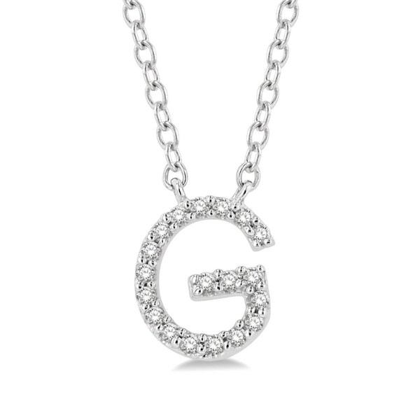 Initial pendants offer a personalized feel. Whether it is wearing one's own initials or the initials of a loved one, the initial pendant is a popular choice. It can be worn by itself or layered with other dainty pendants. So, if you have a 'G' initial in mind, this initial pendant would be a perfect buy. It is also decorated with round-cut diamonds to enhance its appeal. There are a total of 19 prong set round cut diamonds embellishing the initial pendant. A cat chain carries the pendant, both of which are styled in 10-karat white gold. The total diamond weight is 1/20 ctw. Free shipping or in-store pickup.