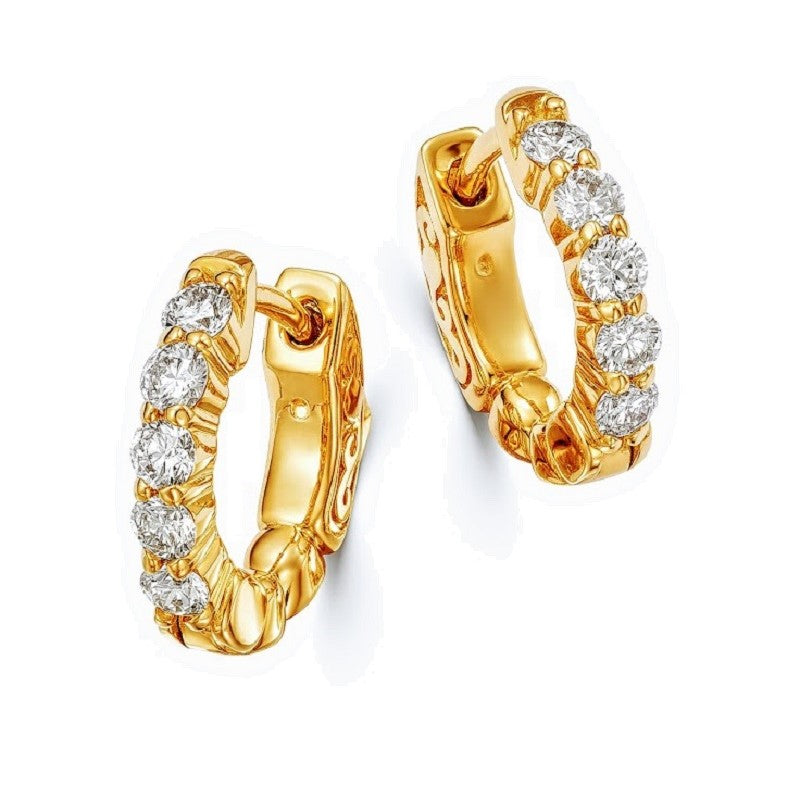 These elegant 14K yellow gold huggie hoop earrings feature a stunning row of 10 near-colorless diamonds, totaling approximately 1/2 carat. Each diamond is SI2 clarity or better, ensuring a brilliant sparkle that adds a touch of luxury to your look. The sleek, modern design of the huggie hoops allows for a secure, comfortable fit while maintaining a chic and sophisticated style. Perfect for both everyday wear and special occasions, these diamond huggie hoops are a timeless addition to any jewelry collection.