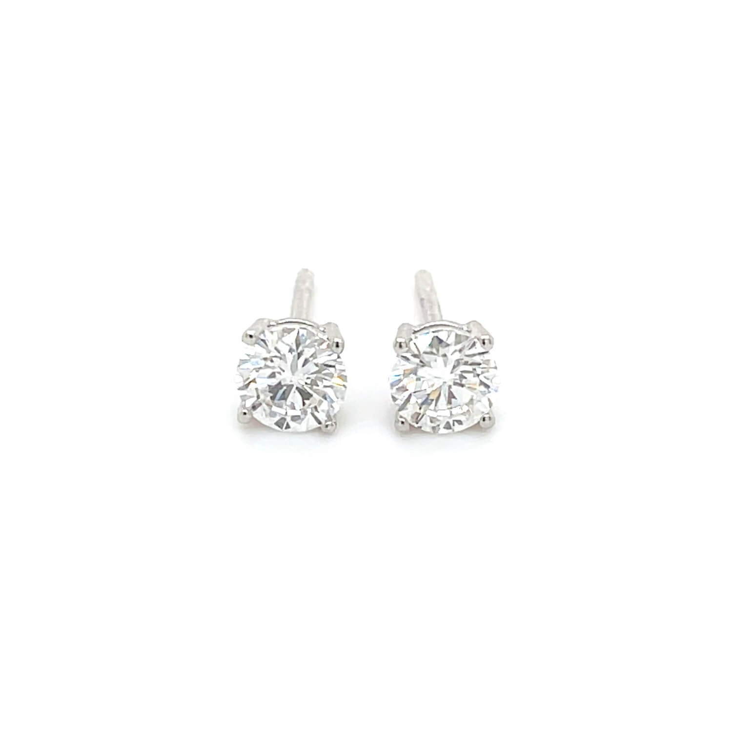 CLOSE TO A CARAT MOTHER'S DAY SPECIAL: These beautiful 4 prong round cut lab grown diamond stud earrings are set in sterling silver. Each G color and SI1 clarity. Enjoy free two day shipping or in-store pickup.
