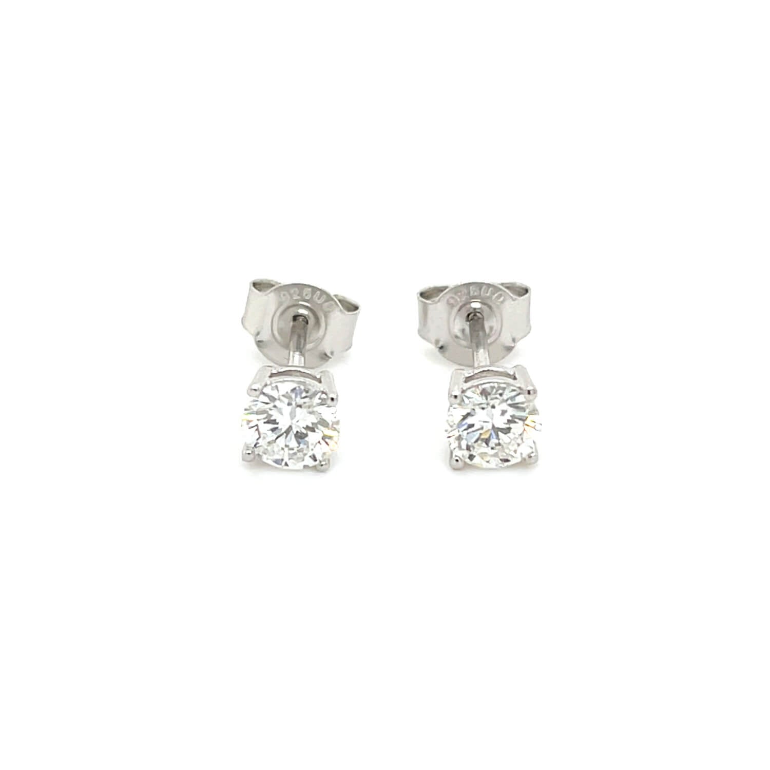 Metal Type/Color: Sterling Silver Diamond Carat Total Weight: 0.90 Ctw # of Diamonds: 2 Shape: Round Color: G Clarity: SI1 Setting Type: 4 Prong Setting Backing: Friction/Push Backing