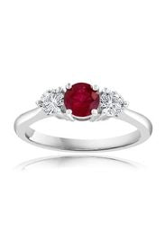 This stunning 3-stone ring symbolizes the past, present, and future with a vivid 3/8 carat round ruby at its center. Flanked by two brilliant round diamonds with a total weight of 1/3 carat, this ring shines with elegance and brilliance. Set in luxurious 18K white gold, the combination of the deep red ruby and sparkling diamonds creates a timeless and meaningful design. Perfect for marking special milestones or anniversaries, this ring beautifully represents enduring love and cherished moments.