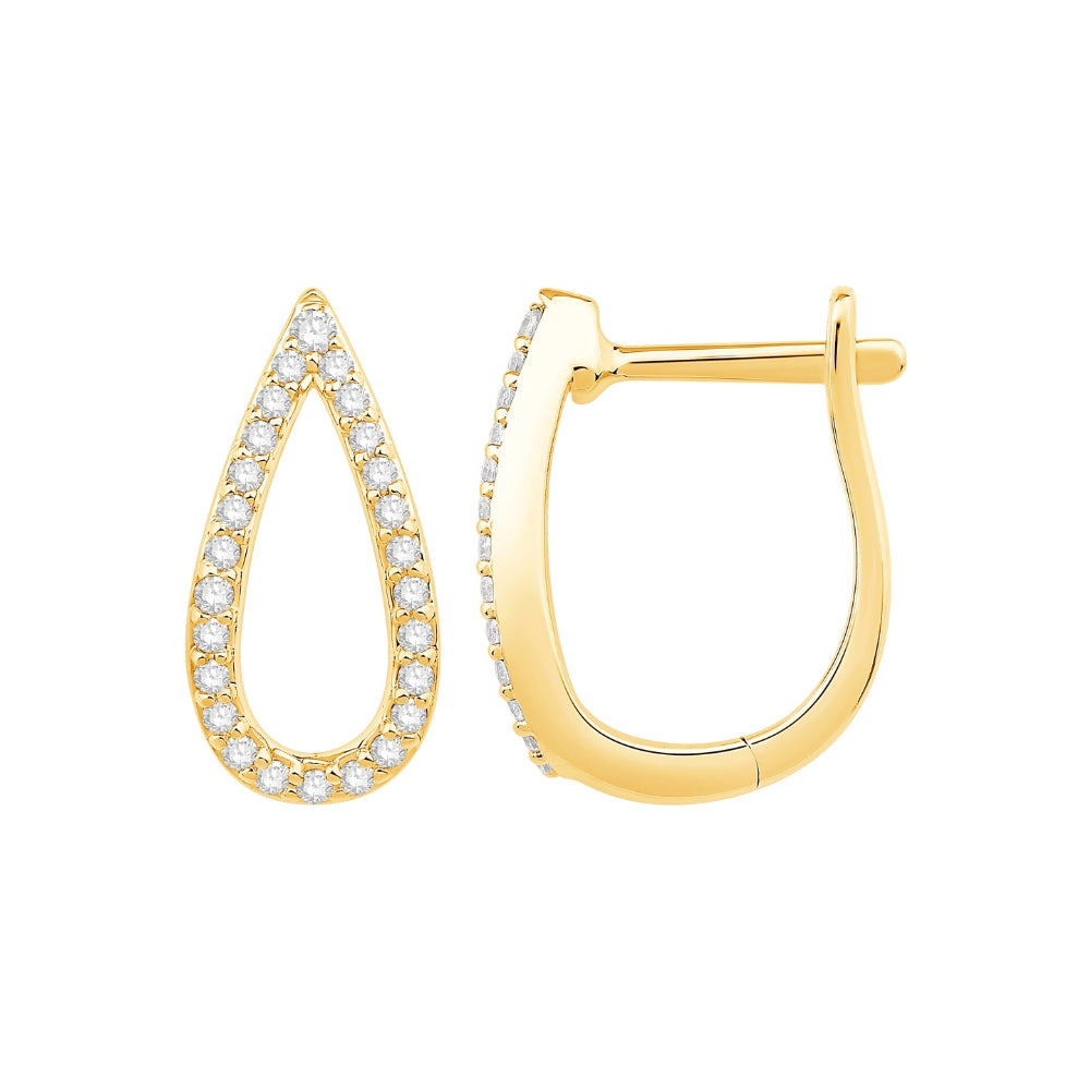 Shop these fashionable pear shape diamond hoop earrings in 14 karat yellow gold with free two day shipping or in-store pickup.