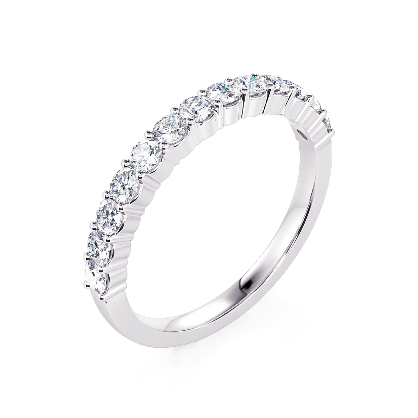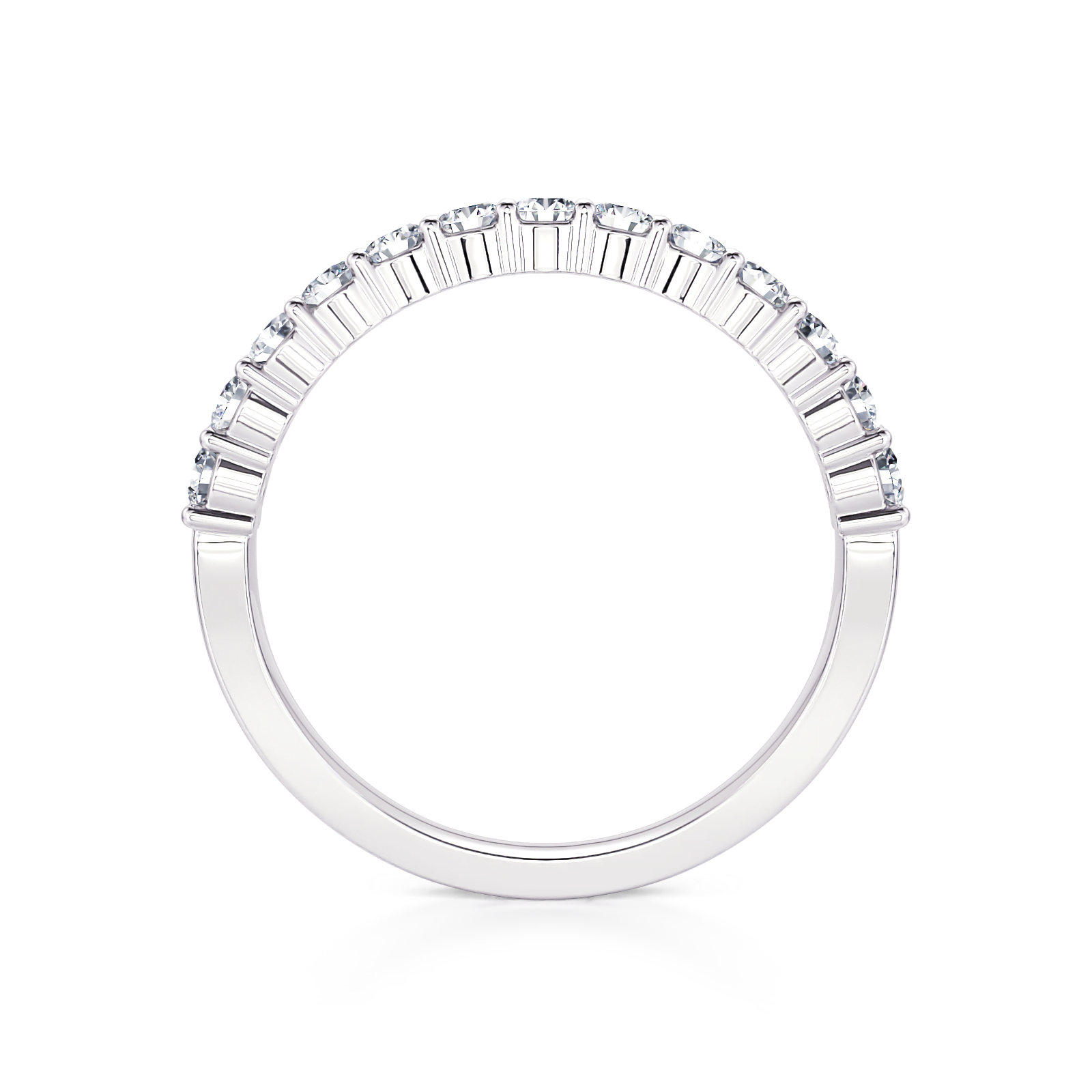 This beautiful classic shared prong diamond wedding band features 1/2 ctw of round diamonds going halfway down the shank.