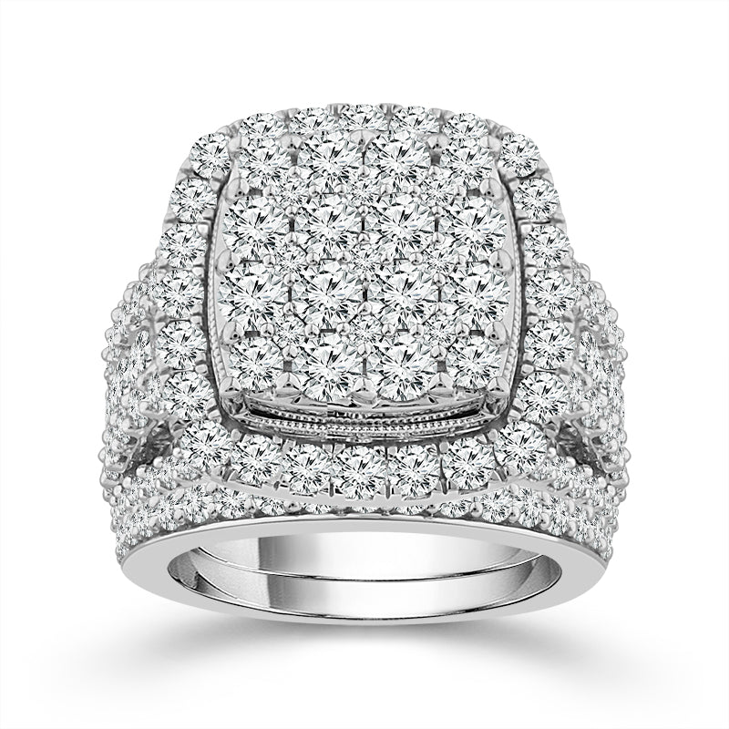 10k White Gold 4.00ctw Diamond Square Cluster Halo Wedding Set