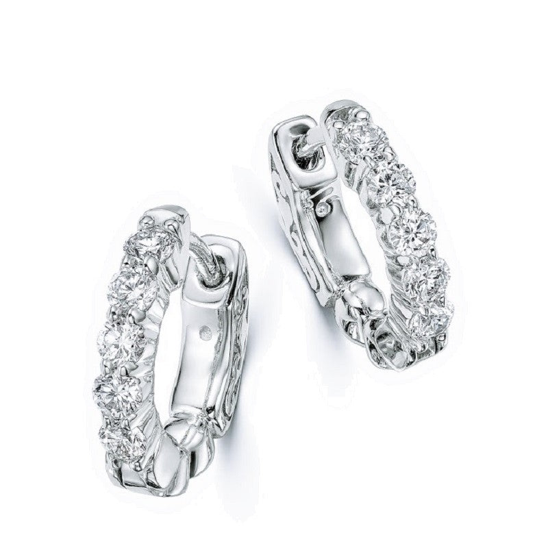 These elegant 14K white gold huggie hoop earrings feature a stunning row of 10 near-colorless diamonds, totaling approximately 1/2 carat. Each diamond is SI2 clarity or better, ensuring a brilliant sparkle that adds a touch of luxury to your look. The sleek, modern design of the huggie hoops allows for a secure, comfortable fit while maintaining a chic and sophisticated style. Perfect for both everyday wear and special occasions, these diamond huggie hoops are a timeless addition to any jewelry collection.