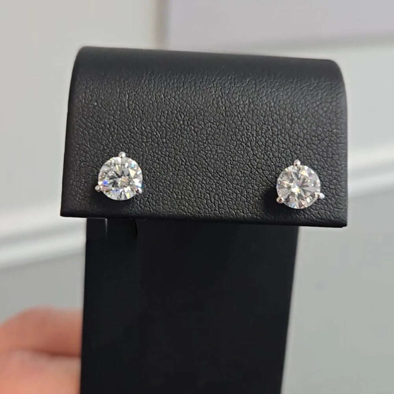 Shop these beautiful 2 carat total weight martini set round lab grown diamond stud earrings in 14 karat white gold with free two day shipping or in-store pickup at Robert Irwin Jewelers.