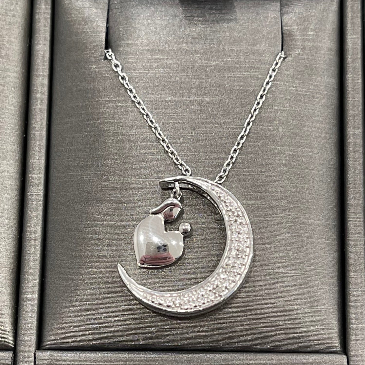 An expression of love, family and togetherness whether near or far, this beautiful diamond crescent moon necklace comes in sterling silver. 3 round diamonds total. 0.03ctw. I2 clarity. H-I clarity. Enjoy free 2 day shipping or in-store pickup at Robert Irwin Jewelers.