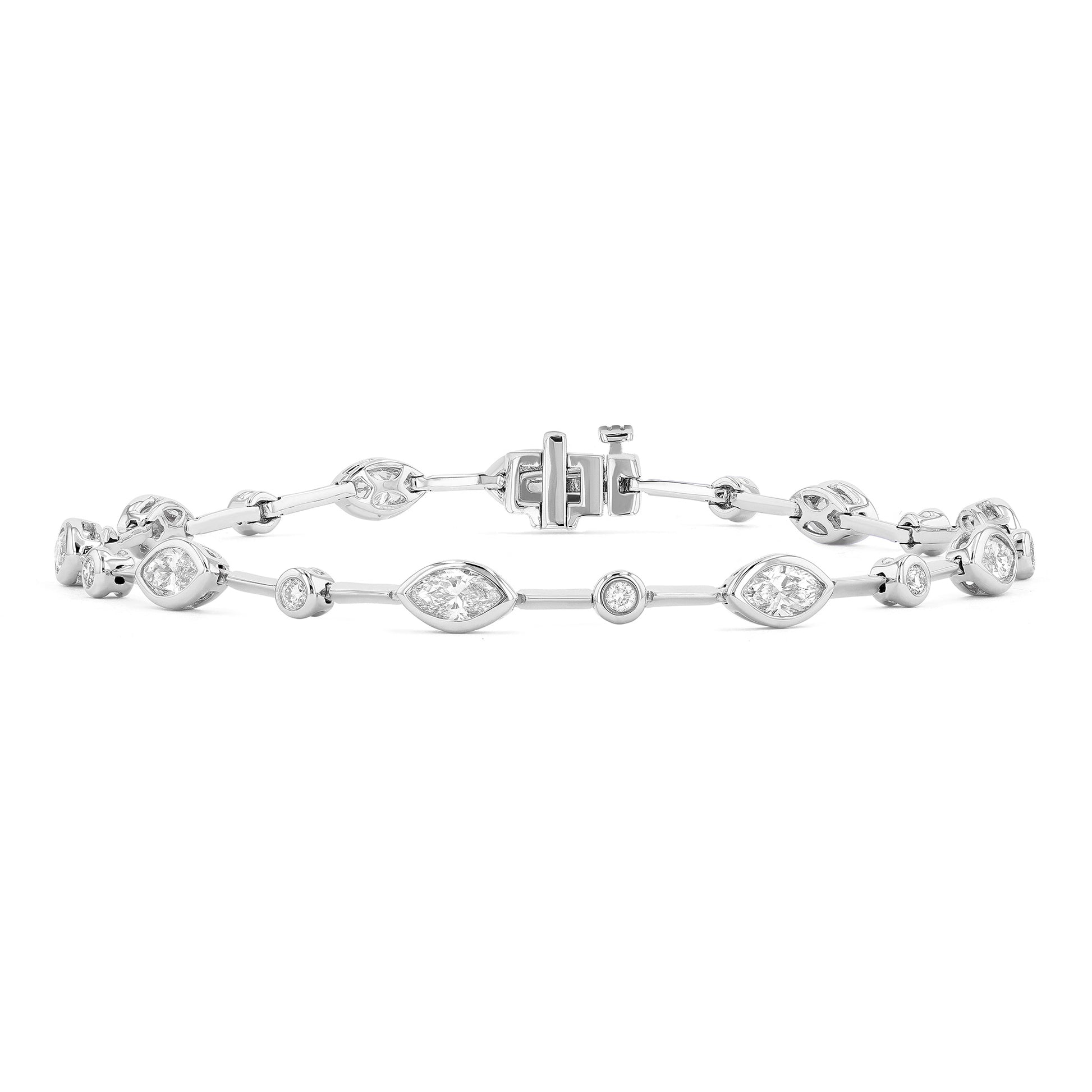 2 1/6 Ctw Couture Marquise and Round and Marquise Diamond Bezel Bracelet in 18 Karat White Gold