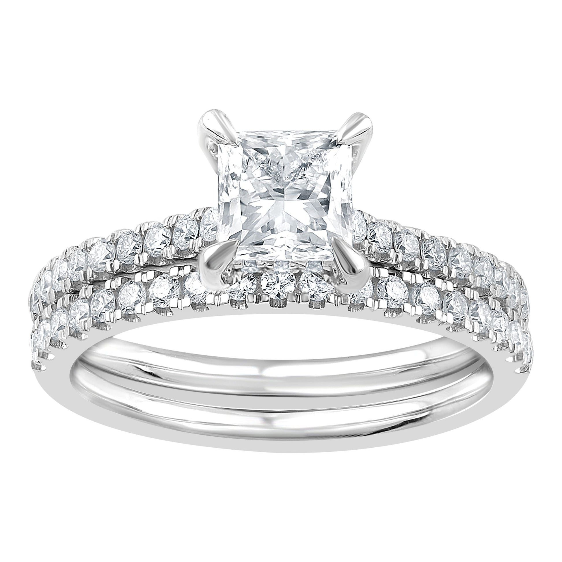 Shop this gorgeous Princess Cut Lab Grown Diamond Wedding Set in White Gold (2 1/2 Ctw) with free two day shipping or in-store pickup. This wedding set features a 2 ct princess cut lab grown diamond center. Enjoy free ring sizing for life with your engagement ring purchase at Robert Irwin Jewelers.