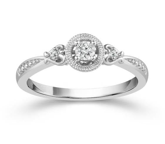 Sterling Silver 0.06ctw Diamond Promise Ring Metal Type/Color: Sterling Silver Total Carat Weight: 0.06ctw Total Diamonds: 3 Round Average Color: HI Average Clarity: I2 Free Shipping or In-Store Pickup