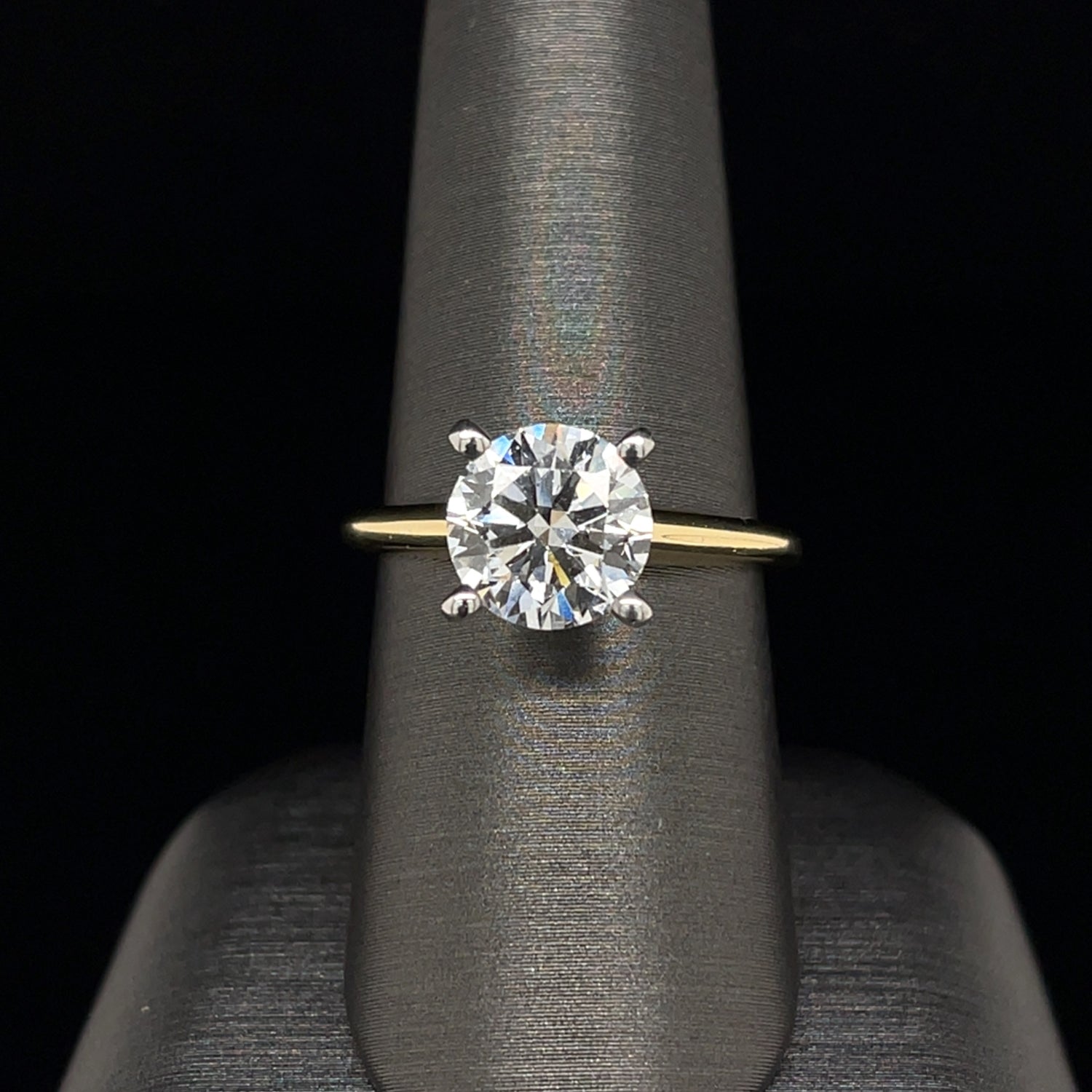 Shop this stunning round solitaire lab grown diamond engagement ring with free two day shipping or in-store pickup. Metal Type/Color: 14 Karat Yellow Gold. 14 Karat White Gold Head Diamond Carat Weight: 2.00 Ct Diamond Color: F-G Color Diamond Clarity: VS2-SI1 Clarity Free Ring Sizing for Life With Ring Purchase