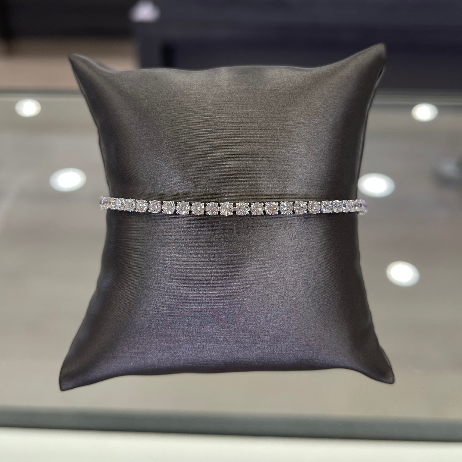 Shop this beautiful Lab Grown Diamond Tennis Bracelet in 10 Karat White Gold (5 Ctw) with free two day shipping or in-store pickup at Robert Irwin Jewelers. Metal Type/Color: 10 Karat White Gold Diamond Carat Total Weight: 5 Ctw Total # of Diamonds: 58 Round Lab Grown Diamonds Bracelet Length: 7 Inches.