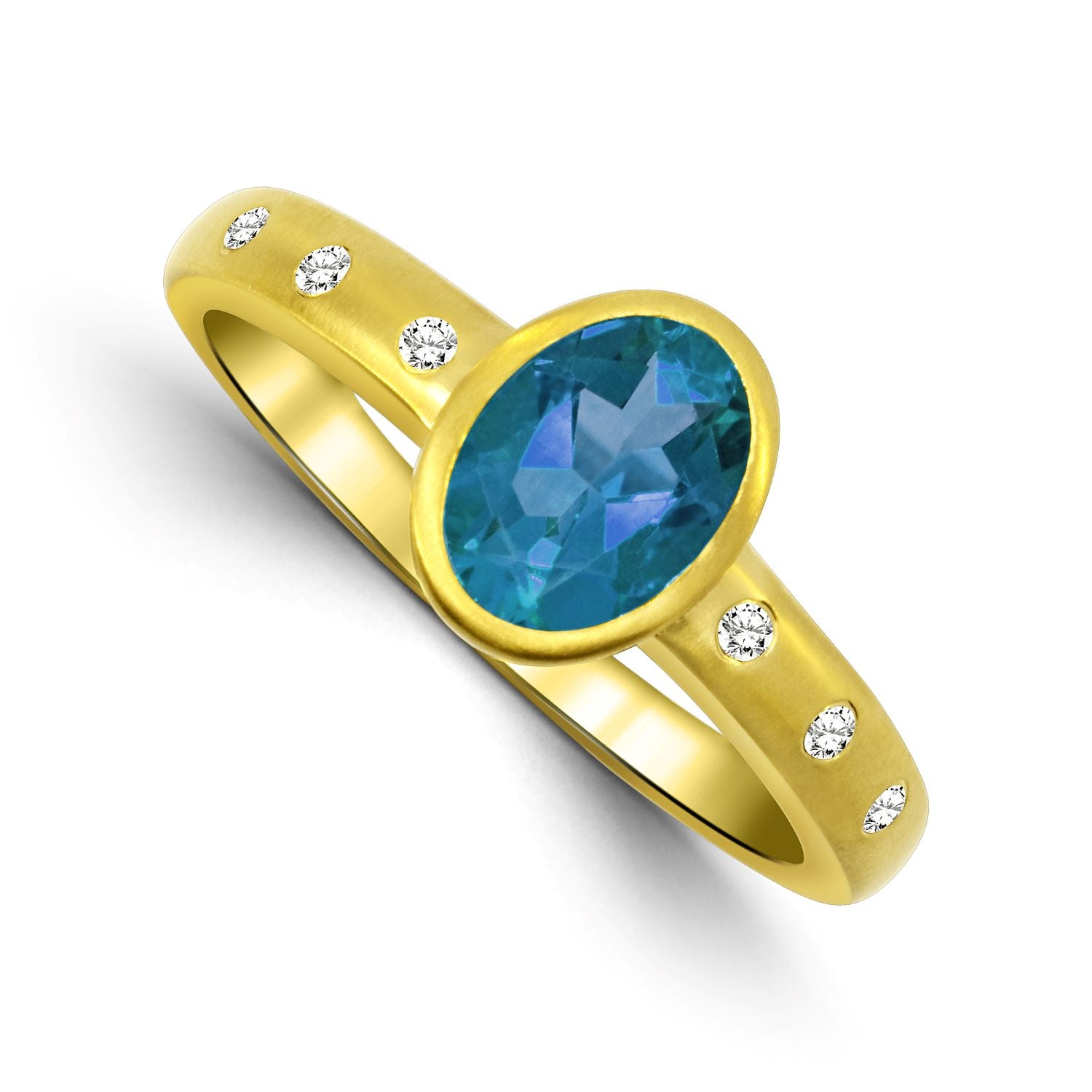 Shop this fashionable bezel set blue topaz and diamond ring in 14 karat yellow gold with free two day shipping or in-store pickup.