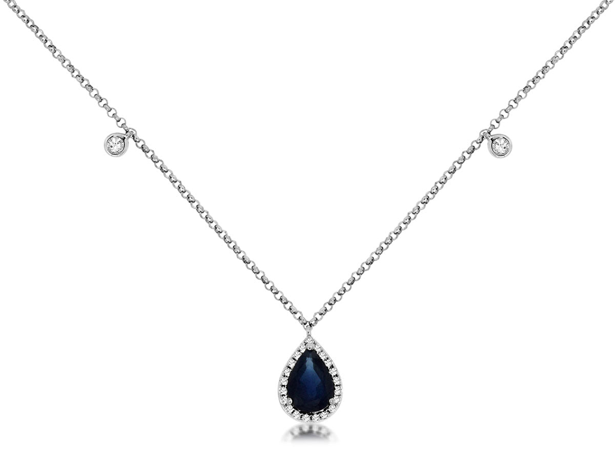 14k White Gold 1.00ctw Diamond and Sapphire Pendant
