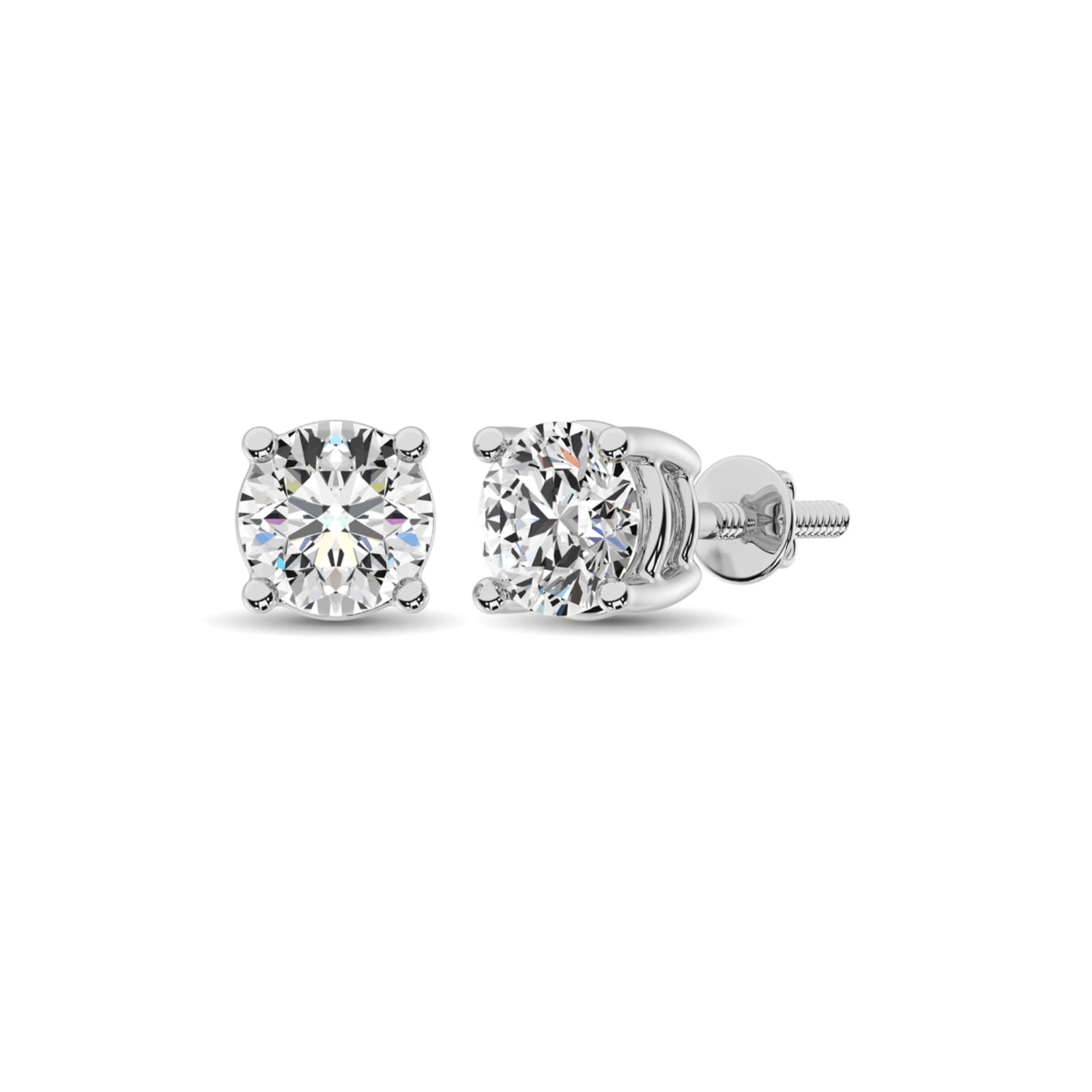Metal Type/Color: 14 Karat White Gold Diamond Carat Total Weight: 0.75 Ctw # of Diamonds: 2 Shape: Round Color: F Clarity: VS1 Setting Type: 4 Prong Setting Cut: Excellent Backing: Screw Backing