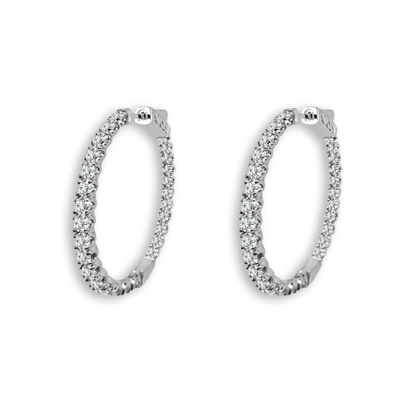 Shop these beauitful Inside Out Lab Grown Diamond Hoop Earrings in 14 Karat White Gold with free two day shipping or in-store pickup at Robert Irwin Jewelers. Metal Type/Color: 14 Karat White Gold Diamond Carat Total Weight: 3 1/5 Ctw # of Diamonds: 38 Round Lab Grown Diamonds Diamond Color: G Color Diamond Clarity: SI1
