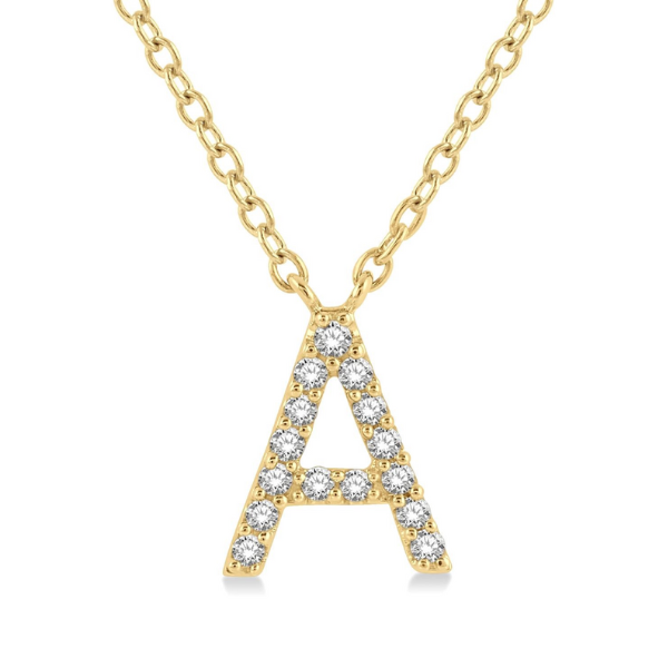 1/20 ctw Initial 'A' Round Cut Diamond Pendant With Chain in 10K Yellow Gold
