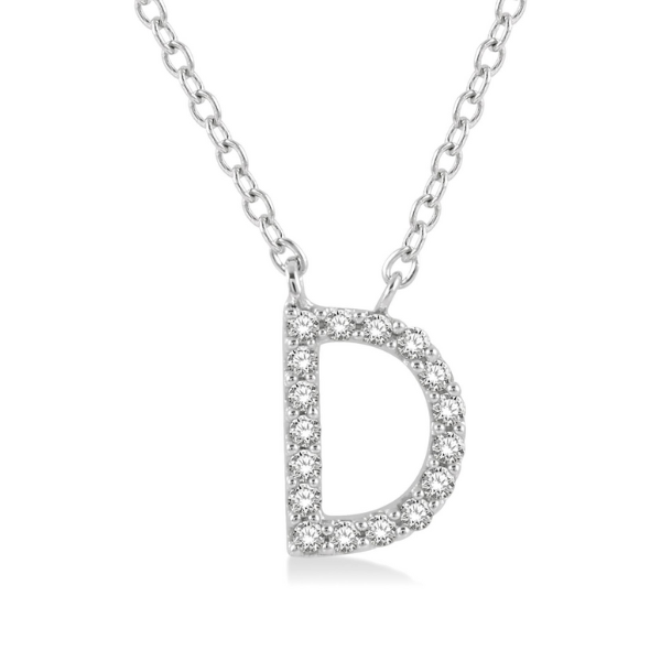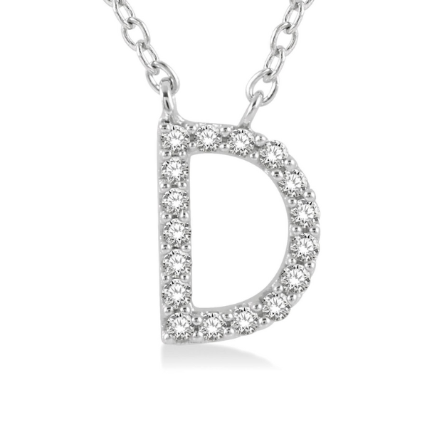 Initial pendants offer a personalized feel. Whether it is wearing one's own initials or the initials of a loved one, the initial pendant is a popular choice. It can be worn by itself or layered with other dainty pendants. So, if you have a 'D' initial in mind, this initial pendant would be a perfect buy. It is also decorated with round-cut diamonds to enhance its appeal. There are a total of 17 prong set round cut diamonds embellishing the initial pendant. A cat chain carries the pendant, both of which are styled in 10-karat white gold. The total diamond weight is 1/20 ctw. Free shipping or in-store pickup.