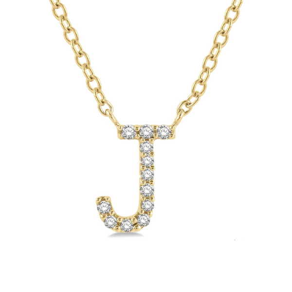 1/20 ctw Initial 'J' Round Cut Diamond Pendant With Chain in 10K Yellow Gold