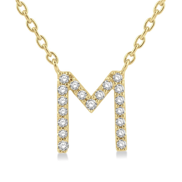 Initial pendants offer a personalized feel. Whether it is wearing one's own initials or the initials of a loved one, the initial pendant is a popular choice. It can be worn by itself or layered with other dainty pendants. So, if you have an 'M' initial in mind, this initial pendant would be a perfect buy. It is also decorated with round-cut diamonds to enhance its appeal. There are a total of 19 prong set round cut diamonds embellishing the initial pendant. A cat chain carries the pendant, both of which are styled in 10-karat yellow gold. The total diamond weight is 1/20 ctw. Free shipping or in-store pickup.