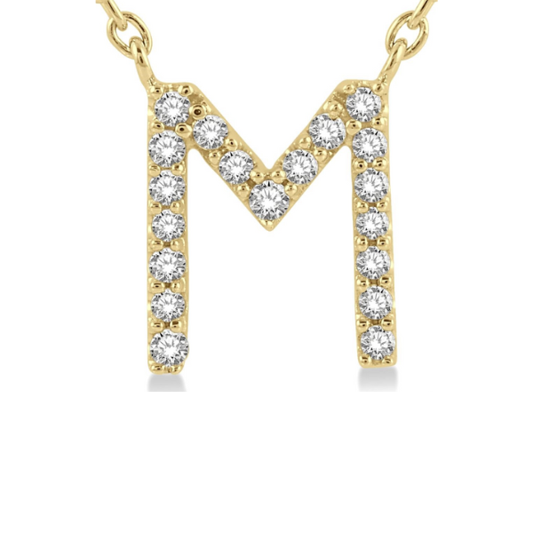 Initial pendants offer a personalized feel. Whether it is wearing one's own initials or the initials of a loved one, the initial pendant is a popular choice. It can be worn by itself or layered with other dainty pendants. So, if you have an 'M' initial in mind, this initial pendant would be a perfect buy. It is also decorated with round-cut diamonds to enhance its appeal. There are a total of 19 prong set round cut diamonds embellishing the initial pendant. A cat chain carries the pendant, both of which are styled in 10-karat yellow gold. The total diamond weight is 1/20 ctw. Free shipping or in-store pickup.