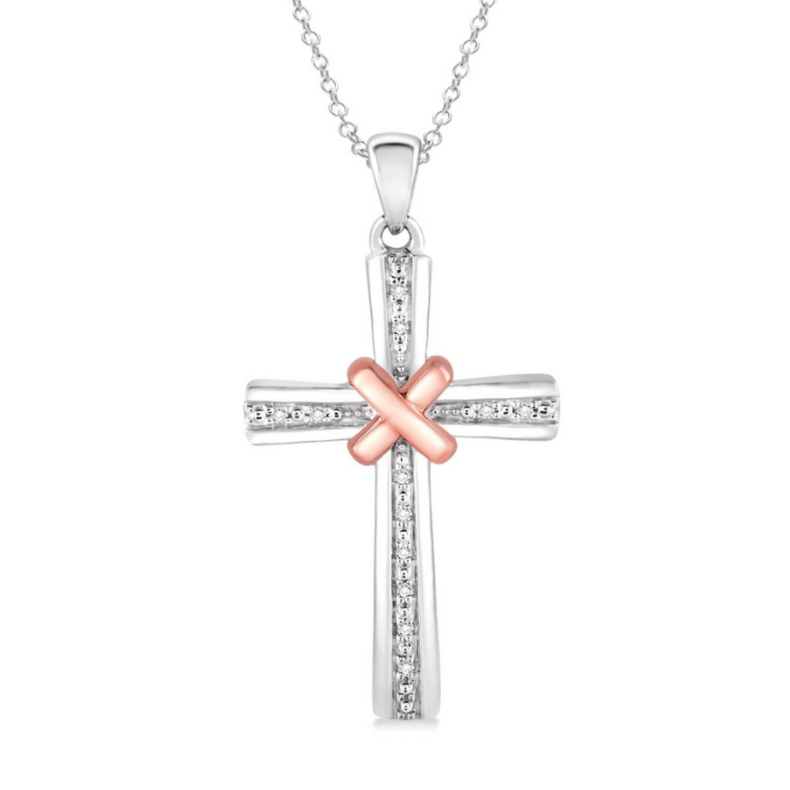 Let this spectacular diamond cross pendant be a meaningful symbol for your faith in the Almighty. Fashioned in luminous sterling silver, this impressive pendant is studded with 12 round cut diamonds in a pave setting. This pendant swings from a beautiful Cable chain. Total diamond weight is 1/20 ctw. Enjoy free two day shipping or in-store pickup.