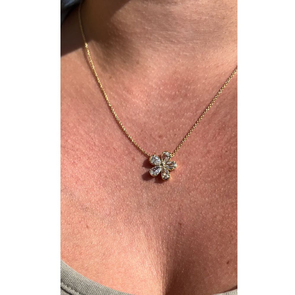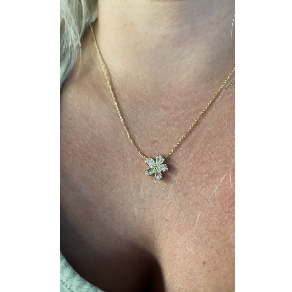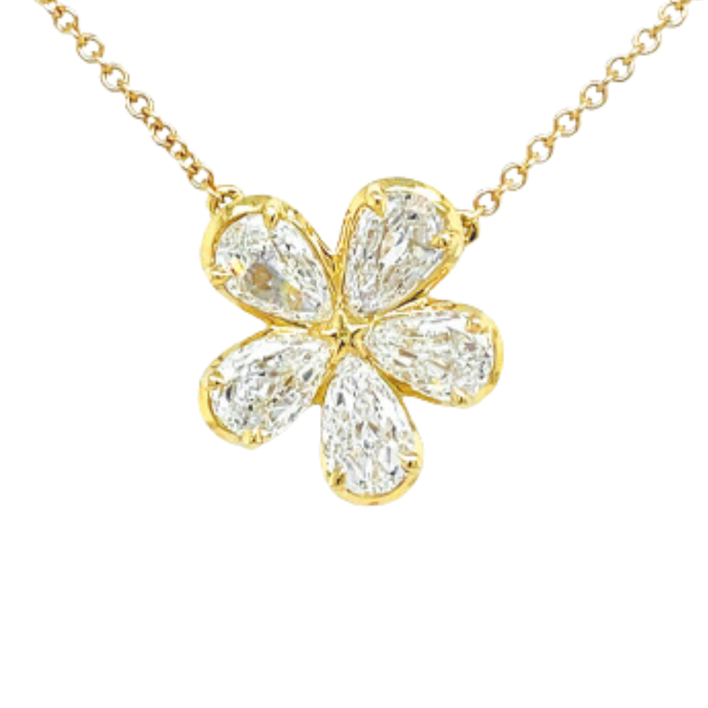 This Christopher Designs 18K Yellow Gold L'Amour Crisscut Pear Shape Diamond Flower Pendant features 5 Crisscut Pear-Shaped Diamond Totaling 1.46ctw. Chain Length is adjustable (16-18 inches). Free shipping or in-store pickup.