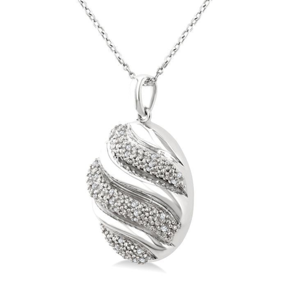 1/10 Ctw Bold Twisted Rib Round Cut Diamond Bold Fashion Pendant With Chain in Sterling Silver
