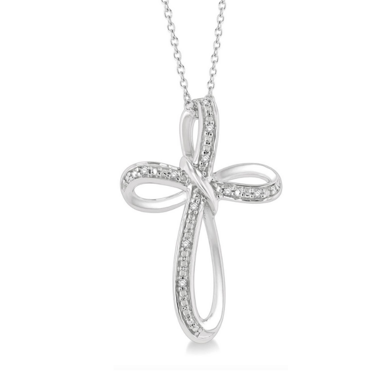 Sterling Silver 1/30 Carat Diamond Infinity Cross Pendant