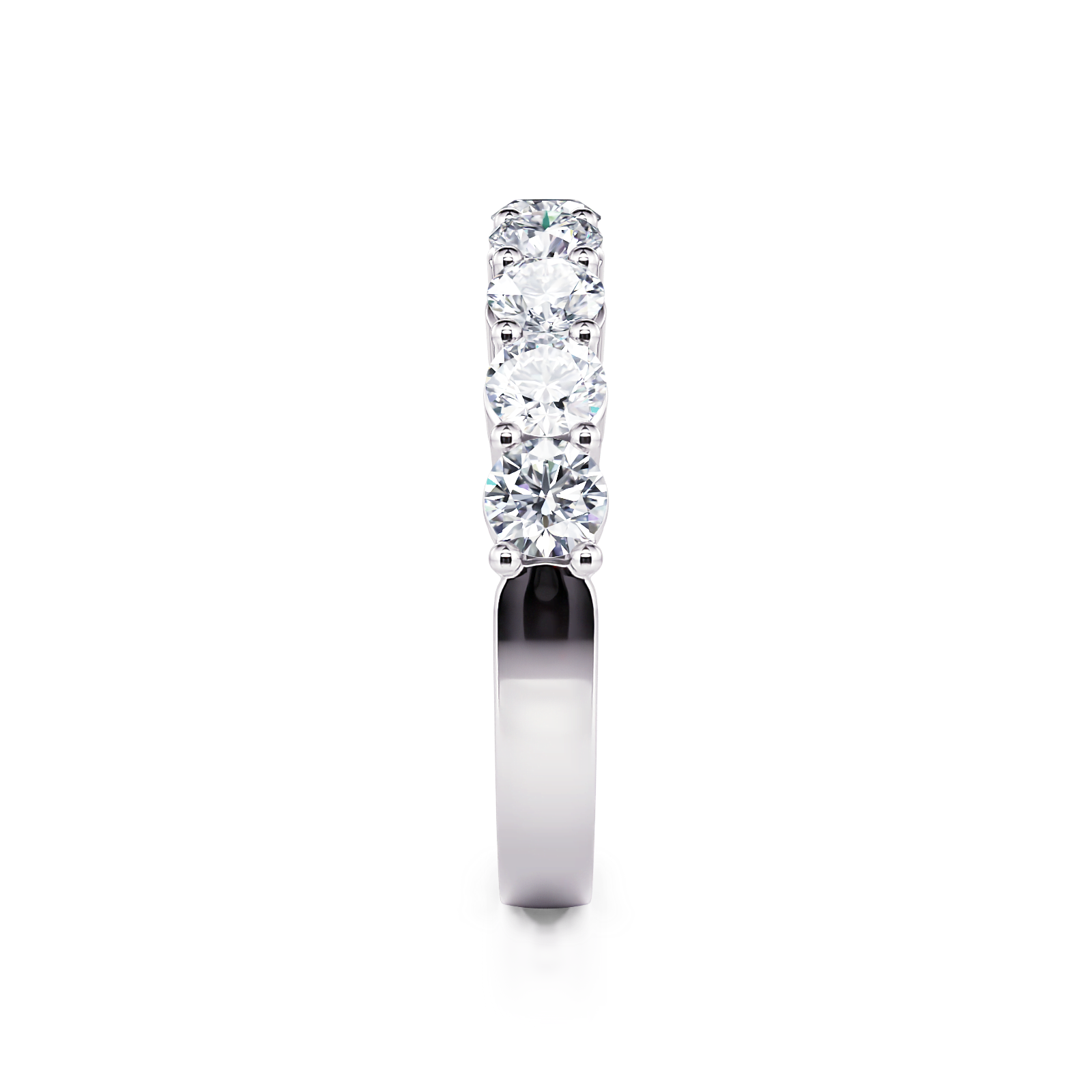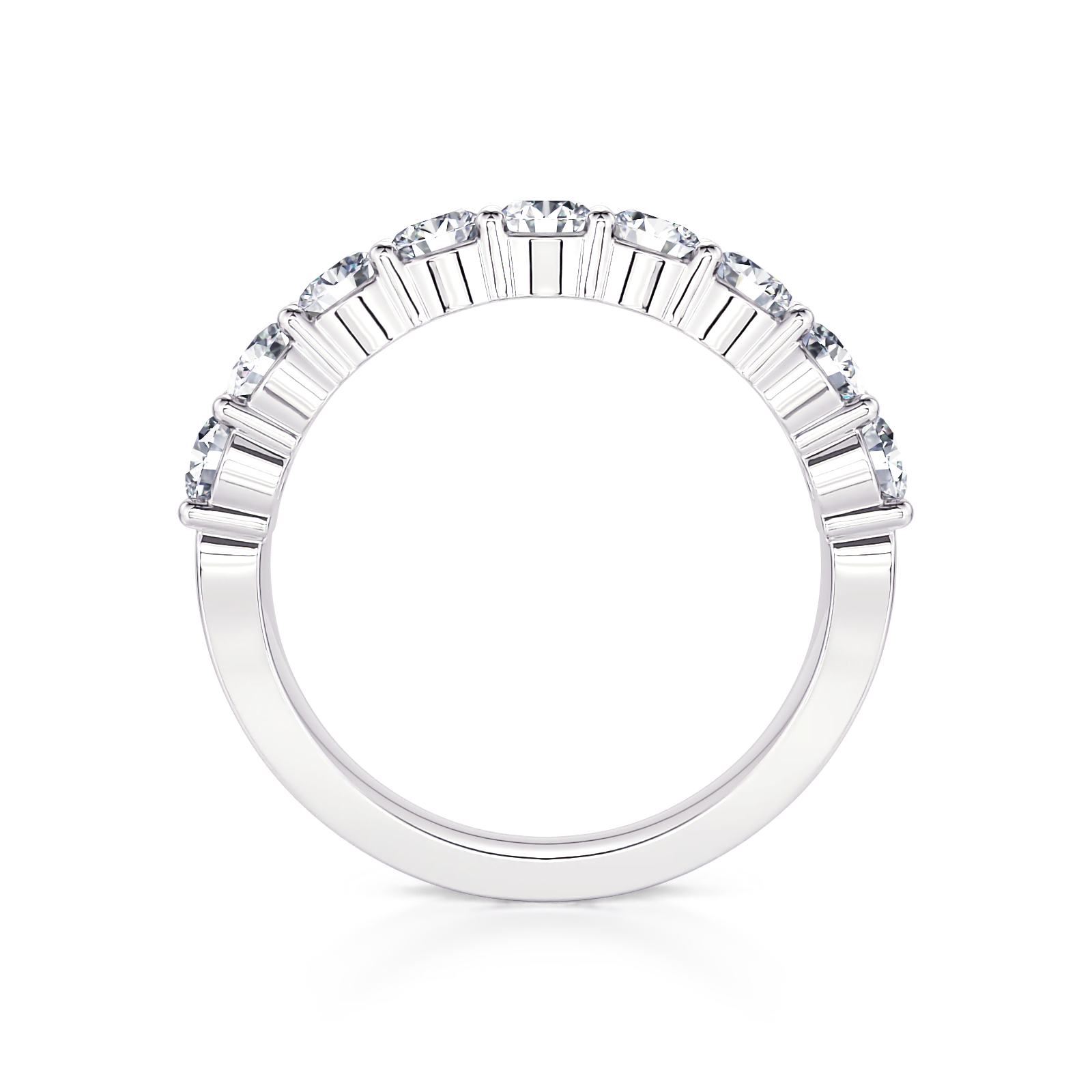 This beautiful classic shared prong diamond wedding band features 1.00 ctw of round diamonds going halfway down the shank.