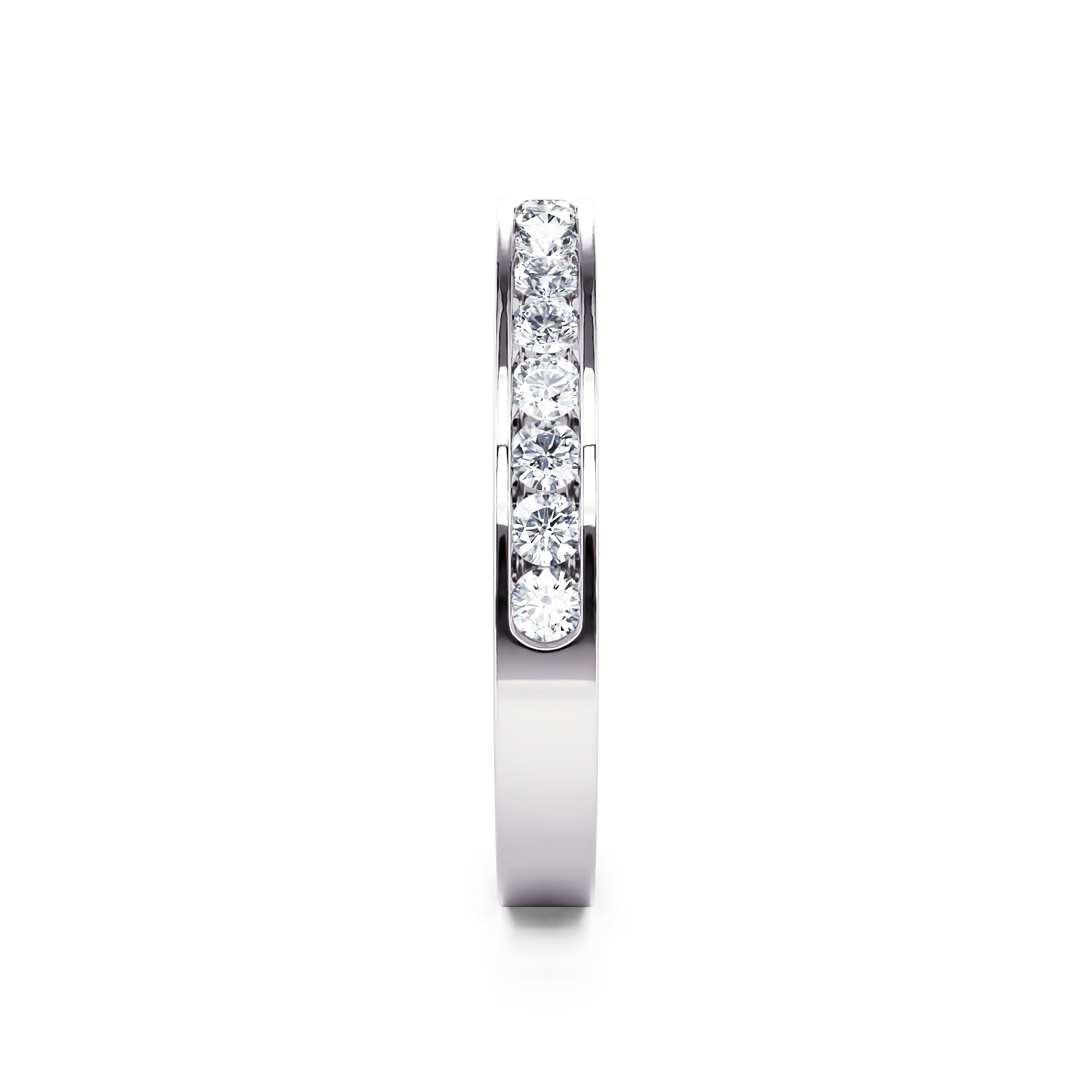 This beautiful classic channel set diamond wedding band features 1/3 ctw of round diamonds going halfway down the shank.