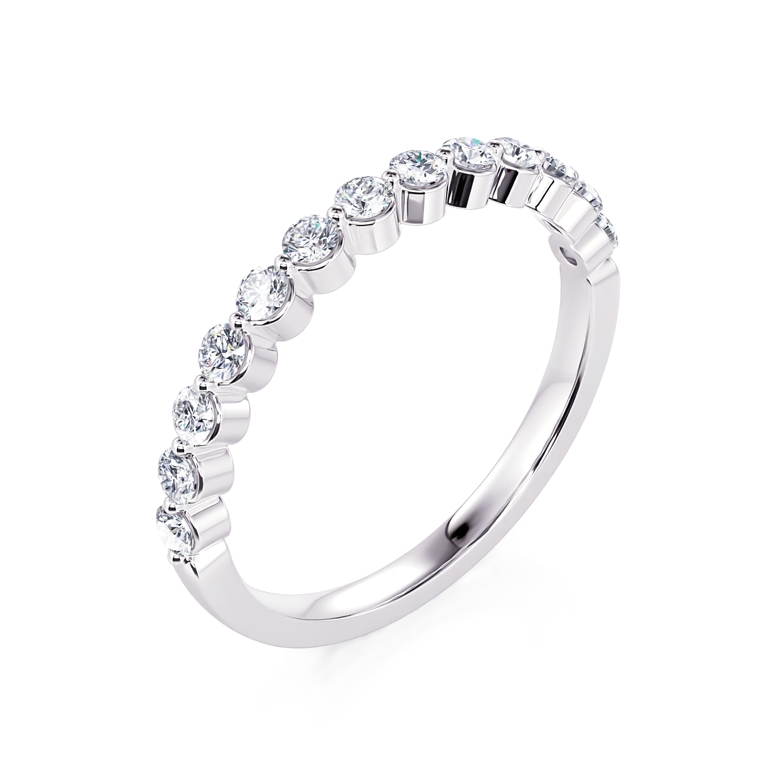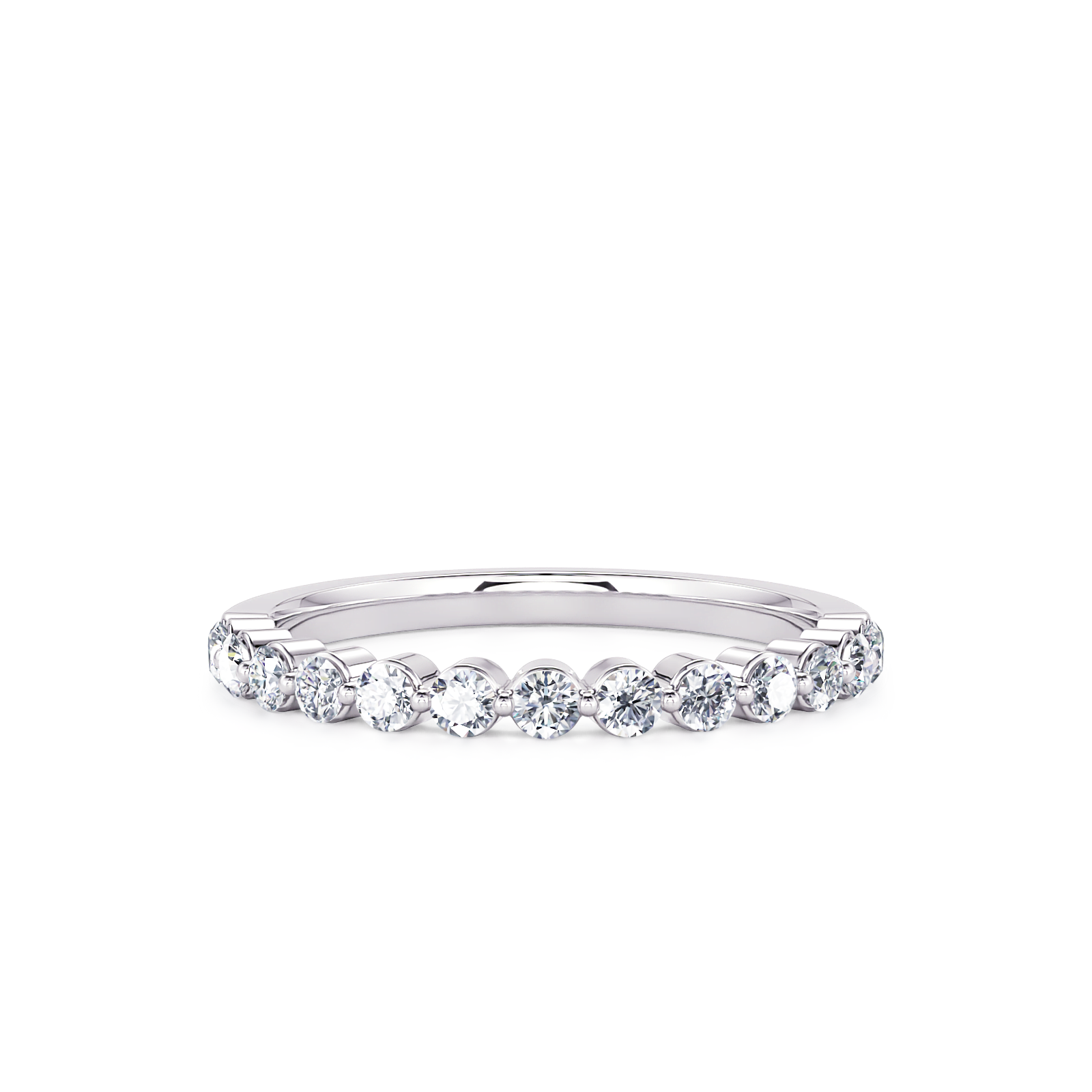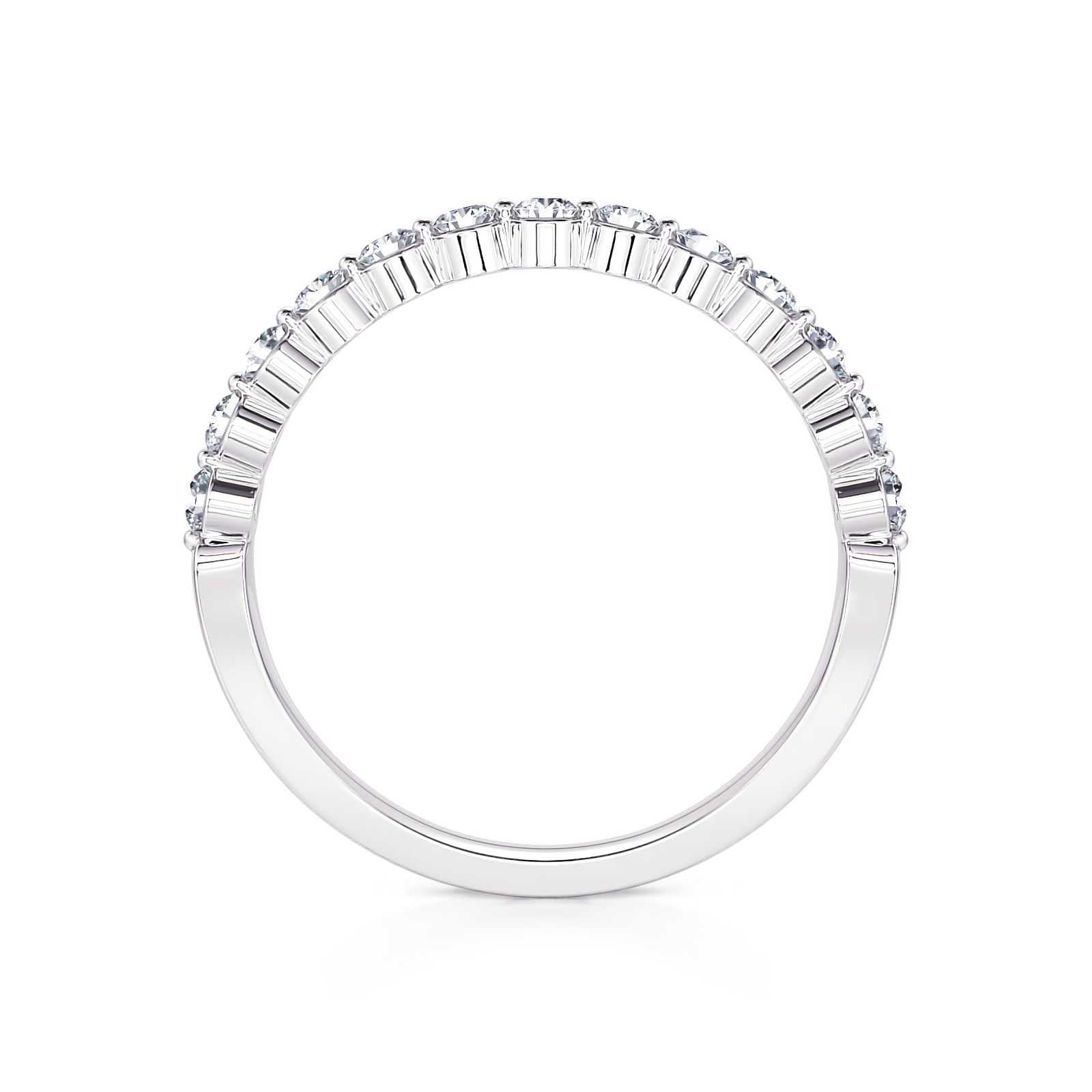 This beautiful classic single prong diamond wedding band features 1/3 ctw of round diamonds going halfway down the shank.