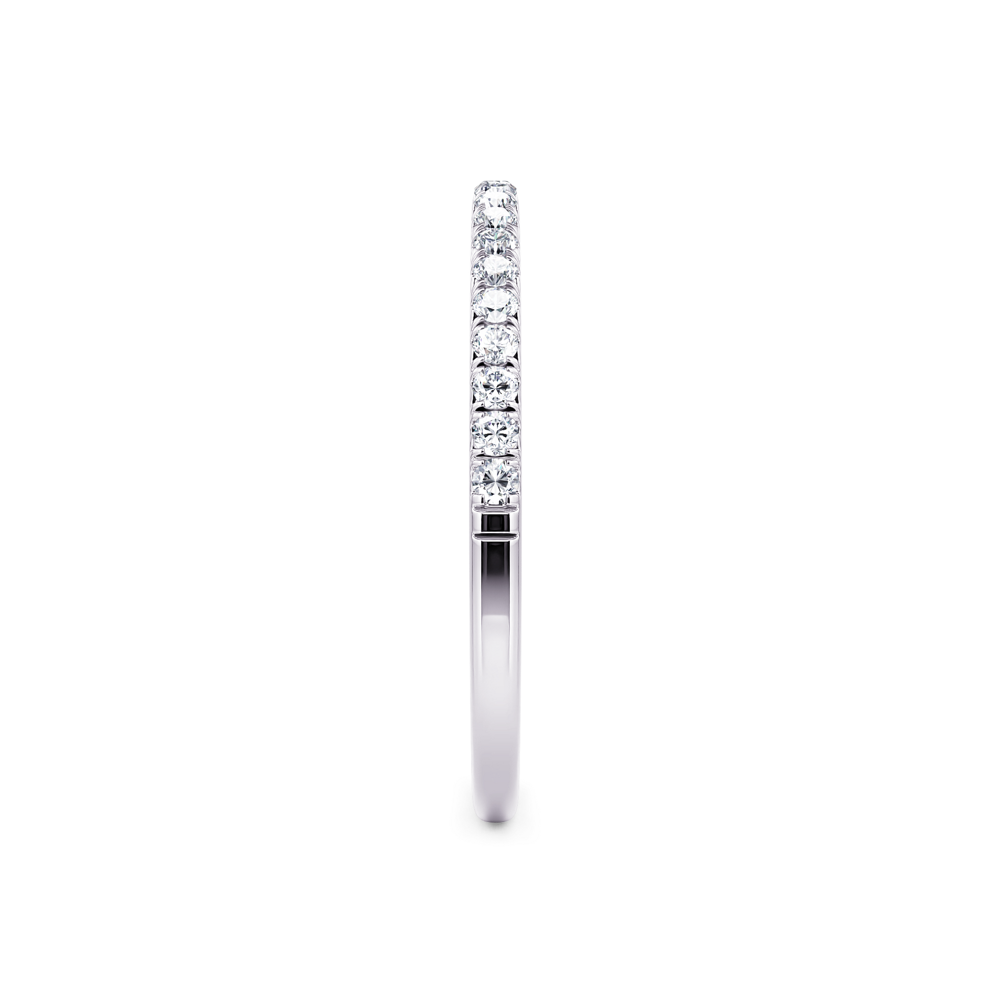 This beautiful classic micro pave diamond wedding band features 1/7 ctw of round diamonds going halfway down the shank.