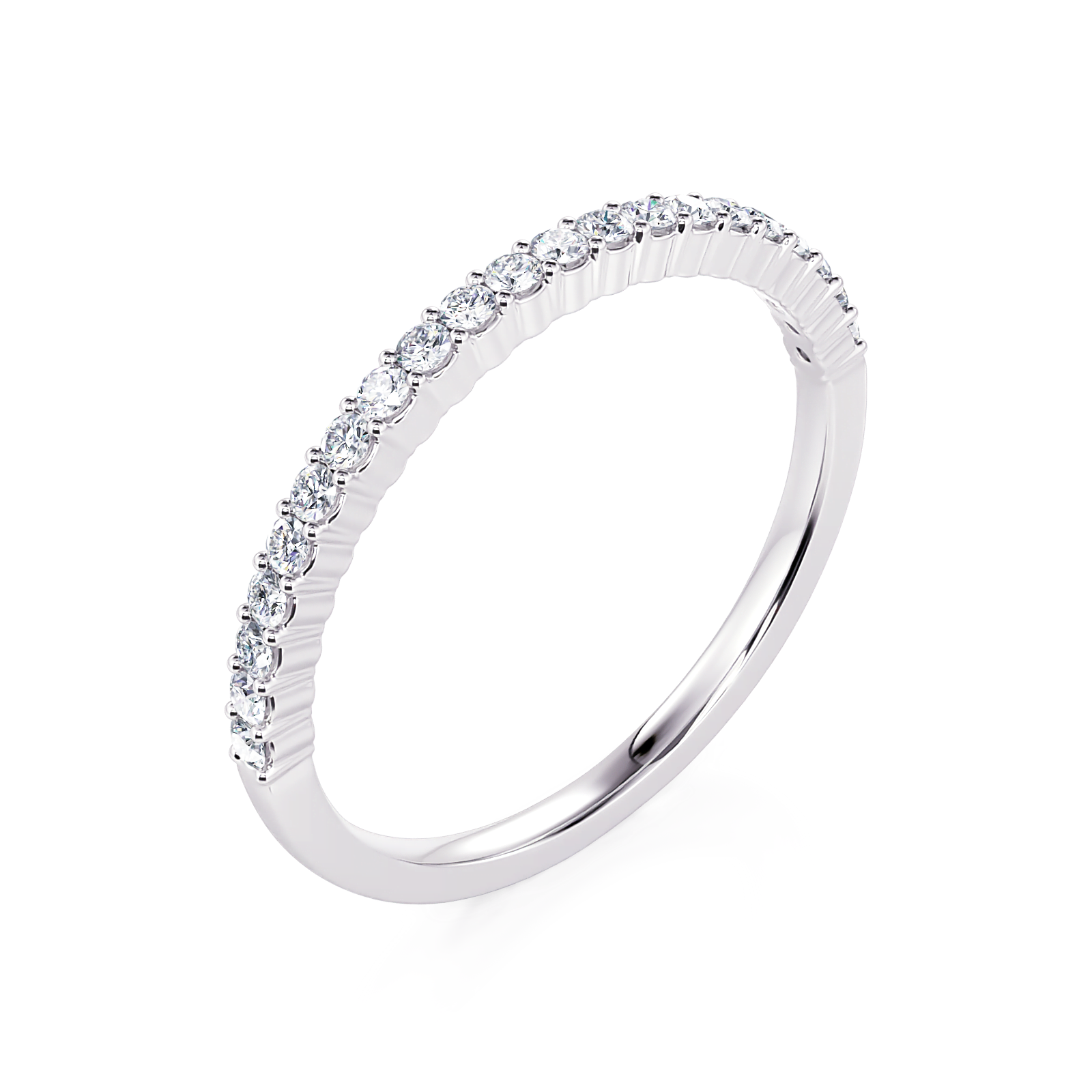 This beautiful classic shared prong diamond wedding band features 1/7 ctw of round diamonds going halfway down the shank.