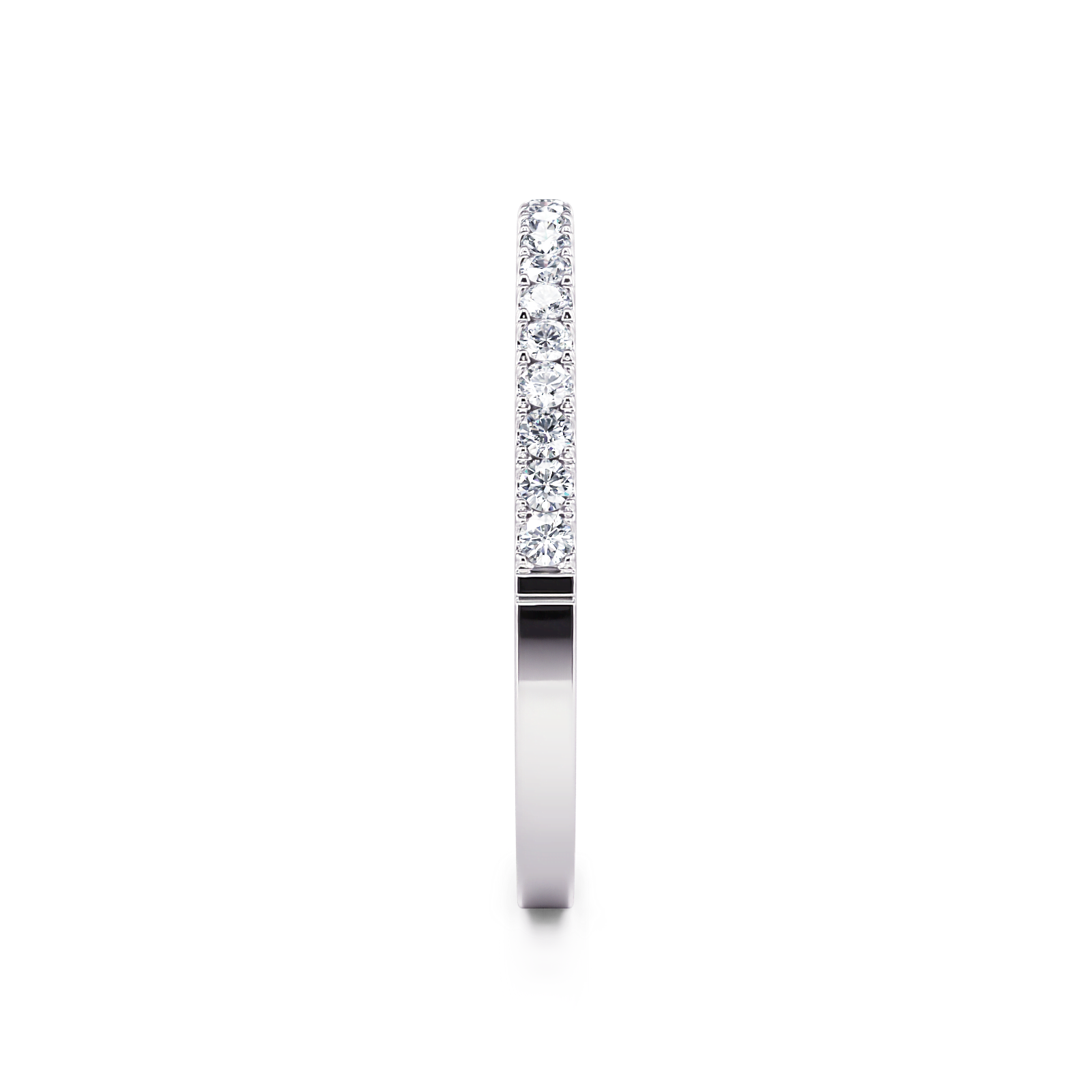 This beautiful classic u prong diamond wedding band features 1/7 ctw of round diamonds going halfway down the shank.
