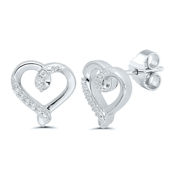 These sterling silver kissing heart-shaped earrings are a stunning piece of jewelry that exudes elegance and style. The earrings are made from bright, shiny sterling silver. Adding to the beauty of these earrings are the diamonds that adorn them. With 1/20 carat total weight of diamonds, these earrings sparkle and shine. These earrings are perfect for any occasion, whether it be a romantic evening out or a formal event. They make a great gift for a loved one or a special treat for yourself. With their timeless design and high-quality craftsmanship, these sterling silver kissing heart earrings are sure to become a treasured addition to any jewelry collection. Enjoy free 2 day shipping or in-store pickup.