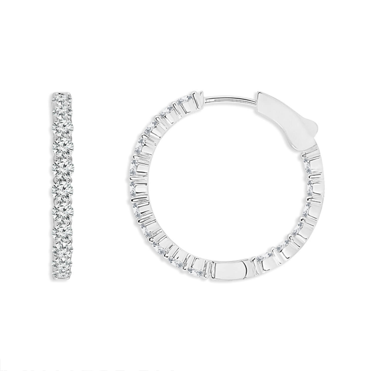 Shop these highly fashionable lab grown diamond hoop earrings in 14 karat white gold with free two day shipping or in-store pickup. These diamond hoop earrings are perfect on their own, or worn with a smaller diamond stud earring.
