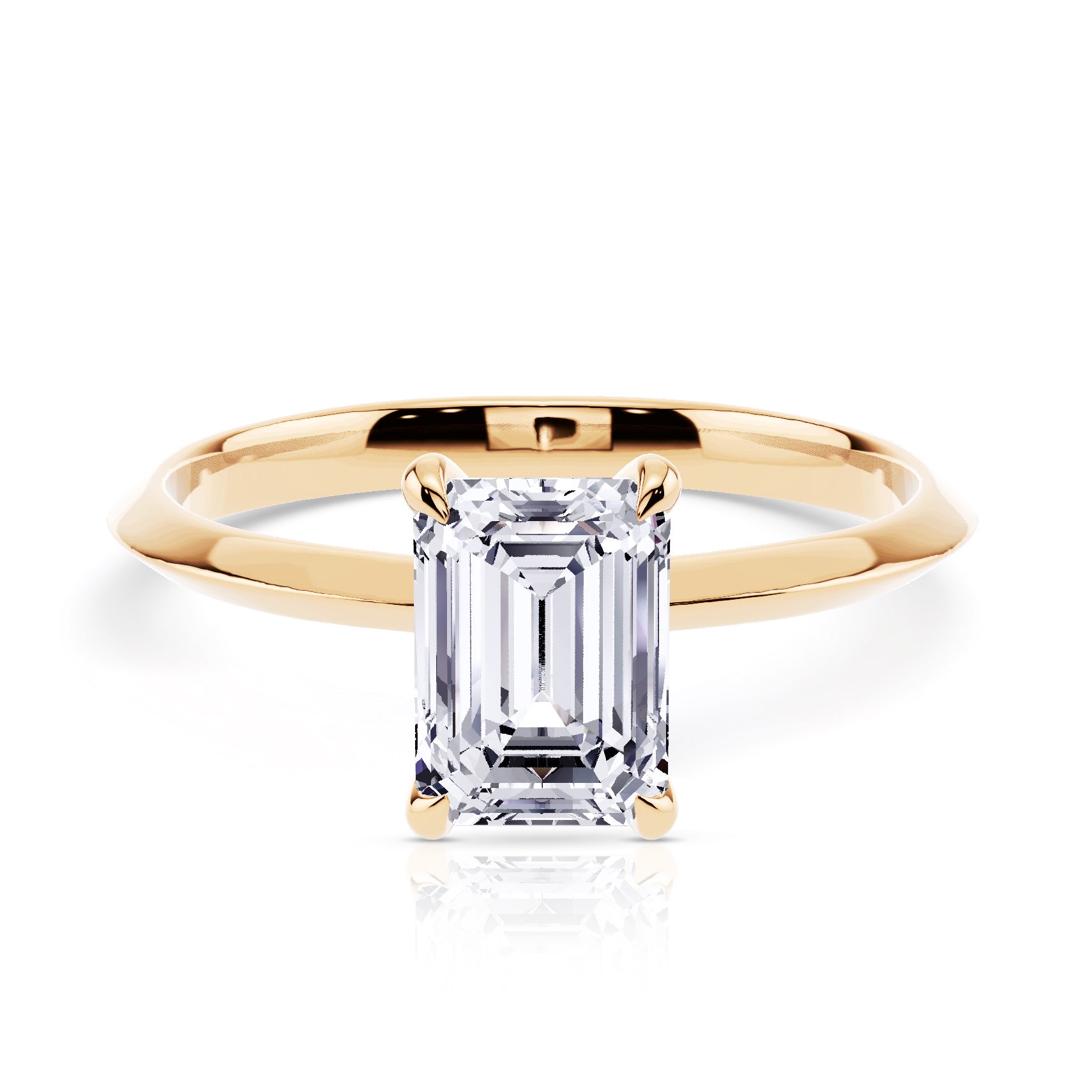Shop this gorgeous emerald cut lab grown diamond engagement ring in 14 karat yellow gold with free two day shipping or in-store pickup. Enjoy free lifetime ring sizing, free rhodium plating, and free ring cleanings with your purchase.