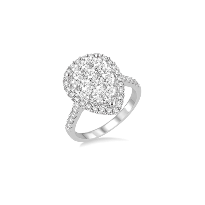 14k White Gold 1.50ctw Pear Shaped Cluster Diamond Ring