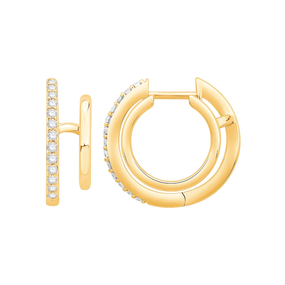 Shop these fashionable diamond double hoop earrings in 14 karat yellow gold with free two day shipping or in-store pickup.