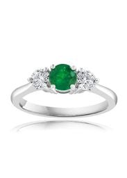 This elegant 3-stone ring symbolizes the past, present, and future with a stunning 3/8 carat round emerald at its center, flanked by two brilliant round diamonds with a combined total weight of 0.35 carats. Set in sleek 18K white gold, this ring captures the timeless beauty of emeralds and diamonds, representing cherished memories, present moments, and future dreams. Perfect for anniversaries or special milestones, this ring offers both classic elegance and sentimental meaning, making it a truly memorable piece.
