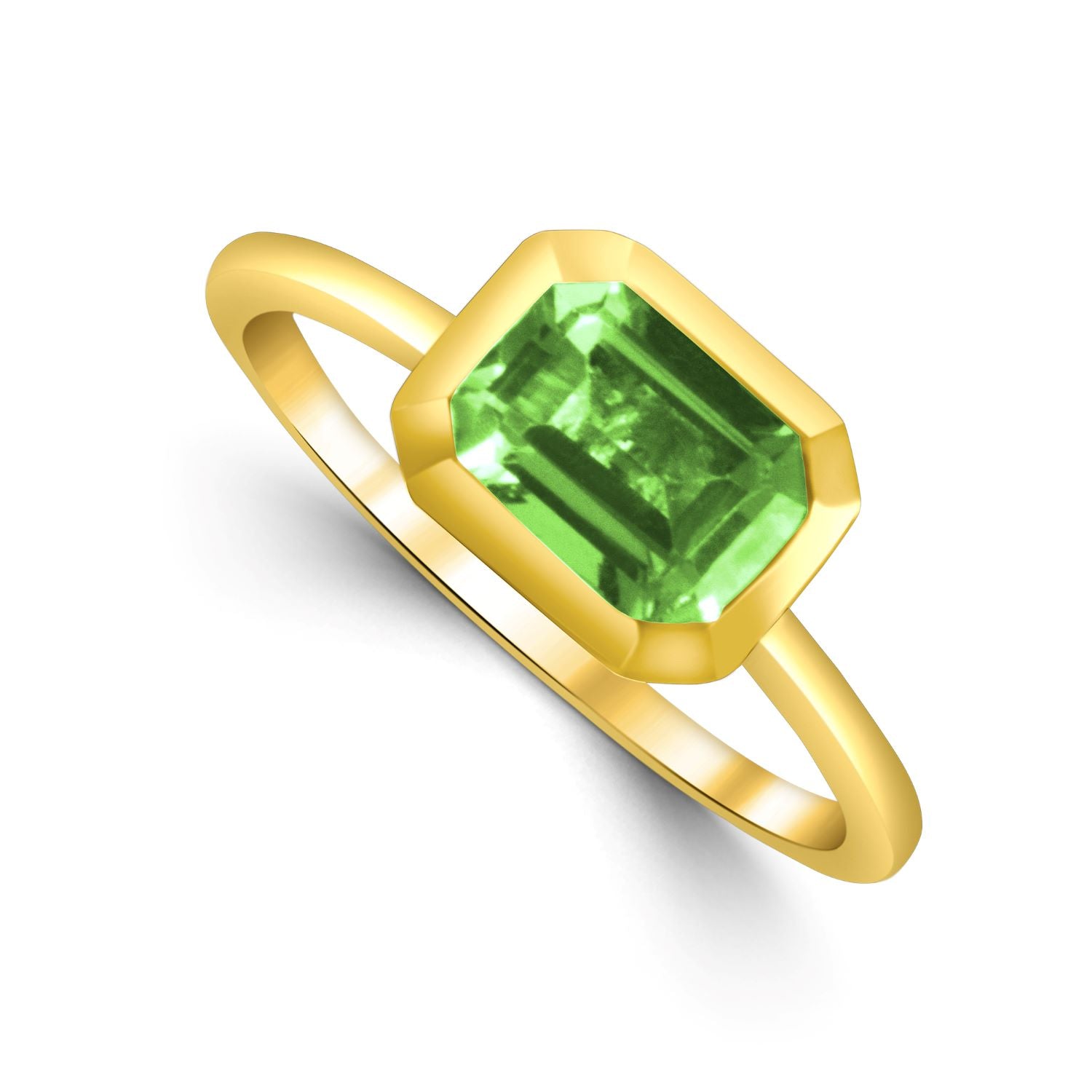 Shop this stunning bezel set emerald cut peridot fashion ring in 14 karat yellow gold with free two day shipping or in-store pickup.