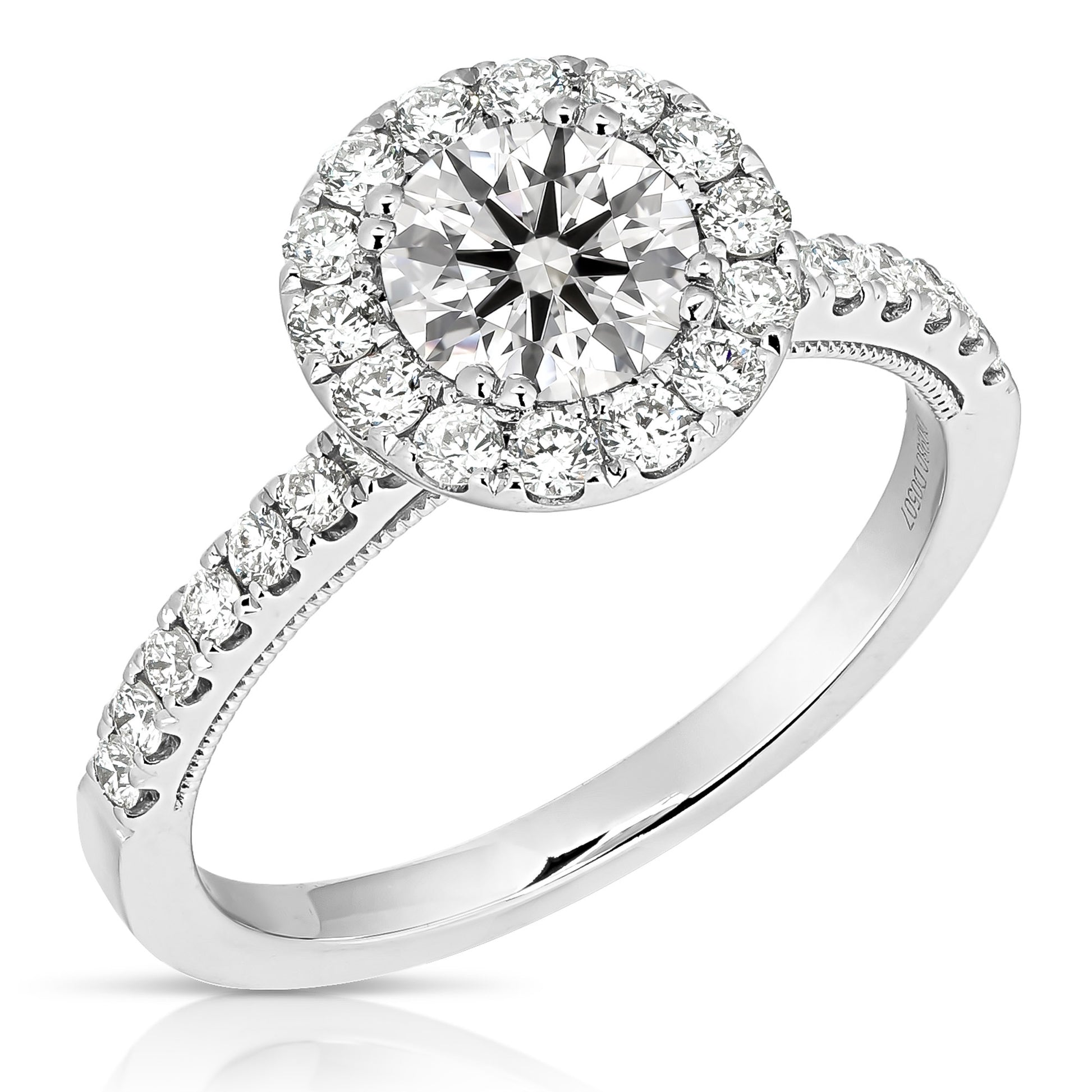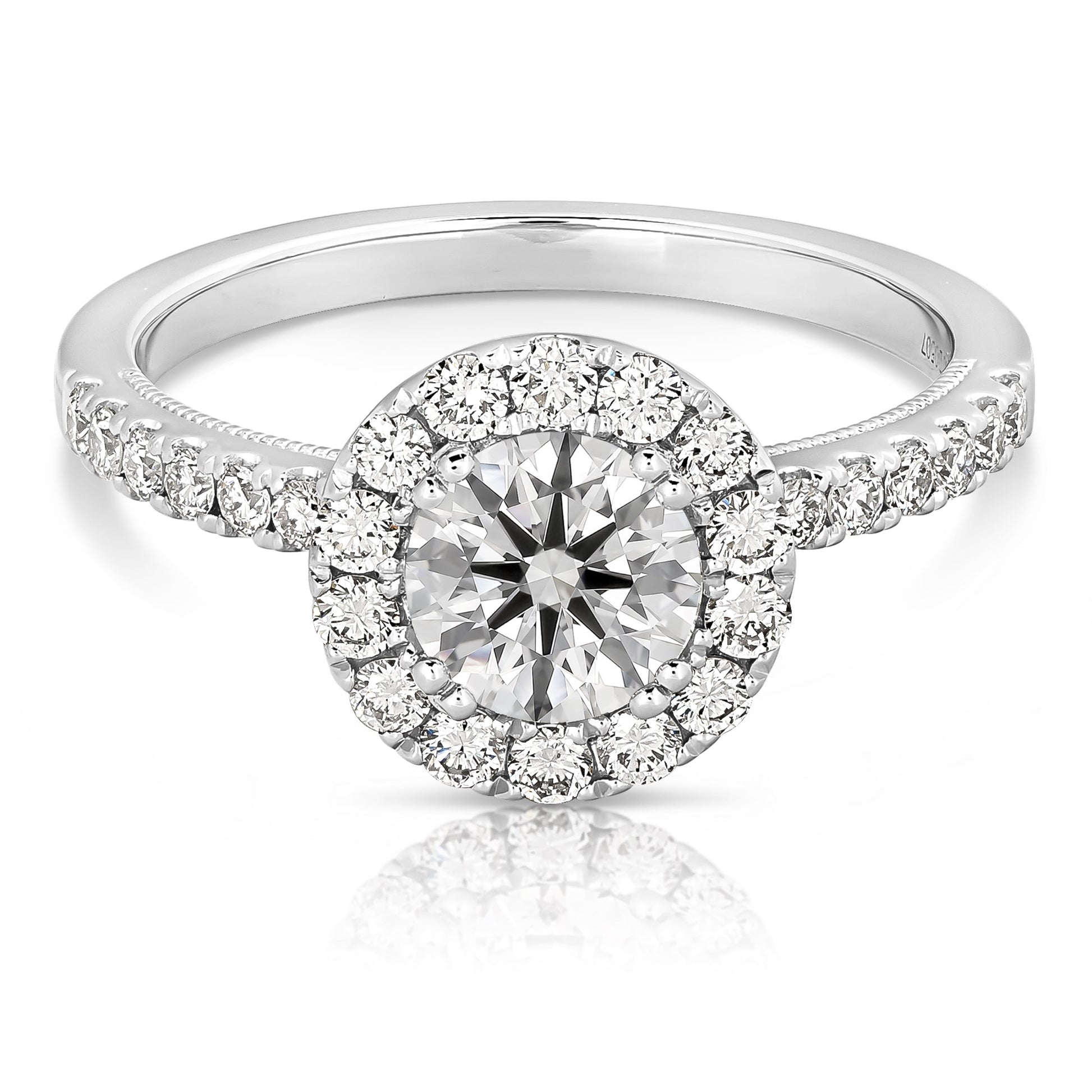 Capture her heart with this captivating engagement ring. Featuring brilliant lab-grown diamonds, prong-set at the center, surrounded by lab-grown diamonds in a round halo. Totaling 1 1/2 ctw, this stunning ring is a breathtaking symbol of your love.