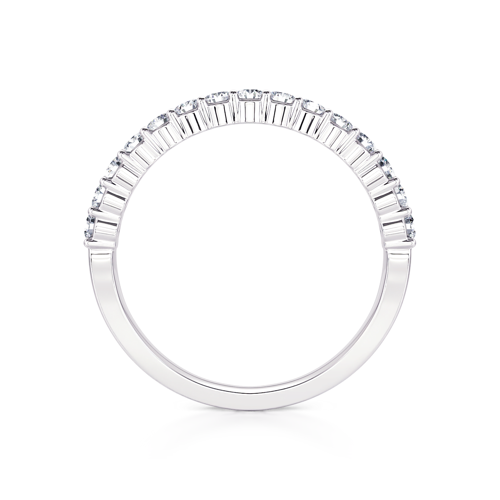 This beautiful classic shared prong diamond wedding band features 1/3 ctw of round diamonds going halfway down the shank.