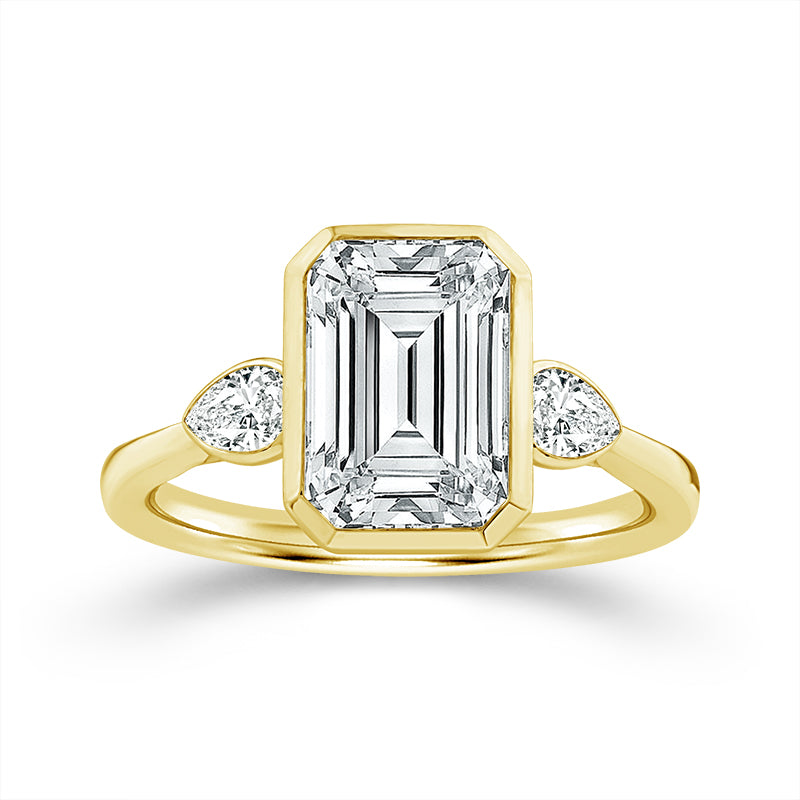 Shop this stunning Bezel Set Emerald and Pear Lab Grown Diamond Engagement Ring in Yellow Gold with free two day shipping or in-store pickup at Robert Irwin Jewelers.