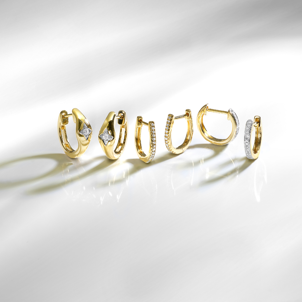 Shop these fashionable diamond hoop earrings in 14k yellow gold with free two day shipping or in-store pickup.