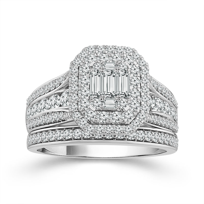 Metal Type/Color: 10 Karat White Gold Diamond Carat Total Weight: 1 1/4 Ctw Total Number of Diamonds: 120 Diamonds | Emerald and Round Cut Diamond Color: H Diamond Clarity: I1 Free Shipping or In-Store Pickup