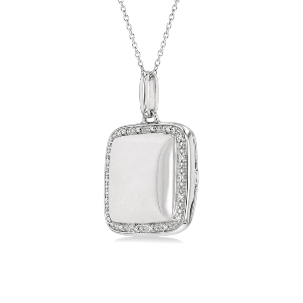 Almost everyone likes to have their loved ones by their side at all times. While this may not be possible always, this keepsake diamond locket pendant gives you the comfort of having your loved ones close by. You can wear a picture of them inside the pendant, so they are forever close to your heart. The locket also has an attractive look, which makes it a neat piece of jewelry. 18 pave set round cut diamonds embellish the rims of the pendant face. A loop holder suspends the locket from a 1MM Cable chain that comes included with the pendant. Both locket and chain are crafted in a rhodium finish sterling silver. Total diamond weight is 1/10 ctw. Enjoy free two day shipping or in-store pickup.